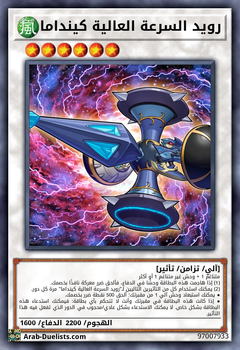 متناغم 1 + وحش غير متناغم 1 أو أكثر (1) إذا هاجمت هذه البطاقة وحشًا في الدفاع، فألحق ضرر معركة نافذًا بخصمك. (2) يمكنك استخدام كل من التأثيرين التاليين لـ"رويد السرعة العالية كينداما" مرة كل دور. ● يمكنك استبعاد وحش آلي 1 من مقبرتك؛ ألحق 500 نقطة ضرر بخصمك. ● إذا كانت هذه البطاقة في مقبرتك وأنت لا تتحكم بأي بطاقة: فيمكنك استدعاء هذه البطاقة بشكل خاص. لا يمكنك الاستدعاء بشكل عادي/محجوب في الدور الذي تفعل فيه هذا التأثير.