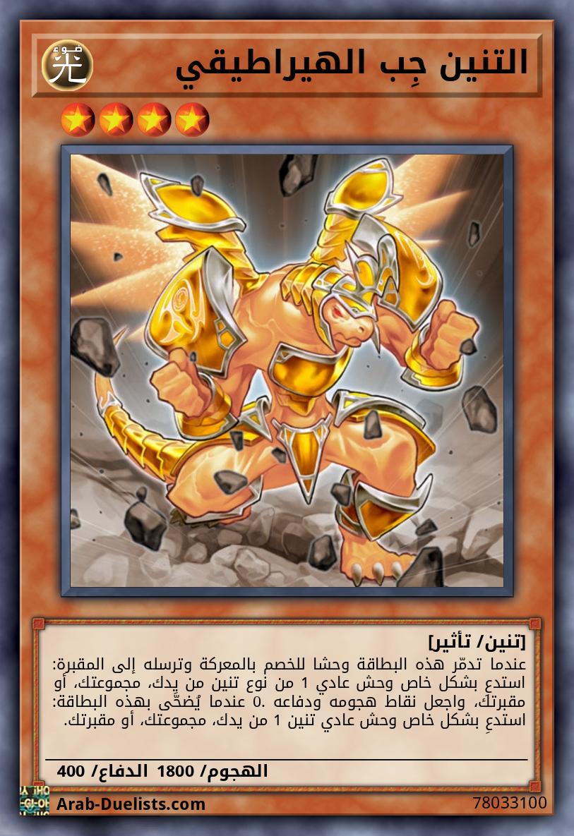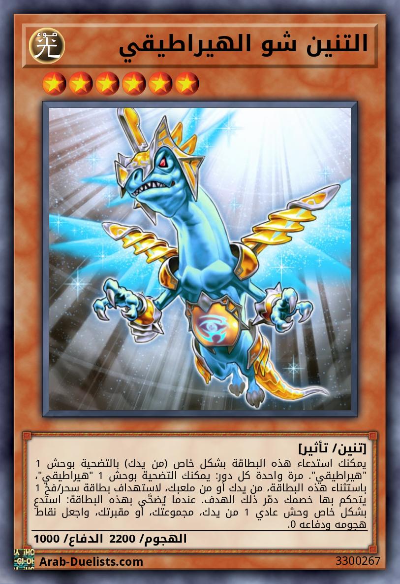 يمكنك استدعاء هذه البطاقة بشكل خاص (من يدك) بالتضحية بوحش 1 "هيراطيقي". مرة واحدة كل دور: يمكنك التضحية بوحش 1 "هيراطيقي"، باستثناء هذه البطاقة، من يدك أو من ملعبك، لاستهداف بطاقة سحر/فخ 1 يتحكم بها خصمك دمّر ذلك الهدف. عندما يُضحَّى بهذه البطاقة: استدعِ بشكل خاص وحش عادي 1 من يدك، مجموعتك، أو مقبرتك، واجعل نقاط هجومه ودفاعه 0.