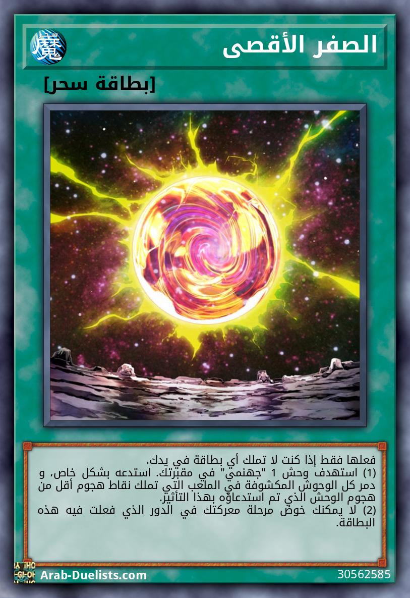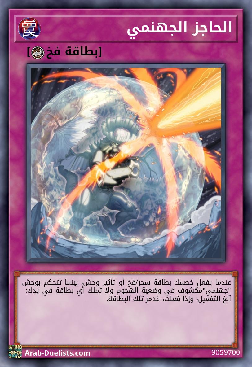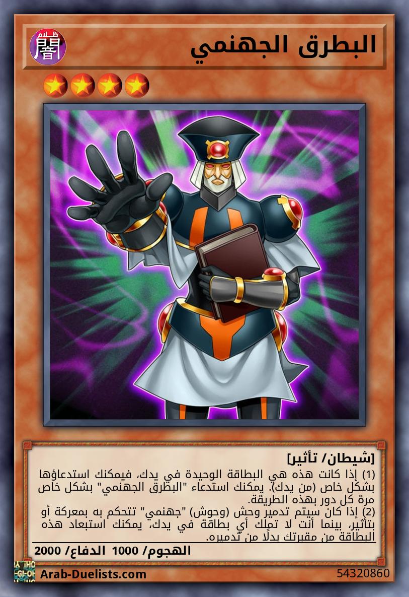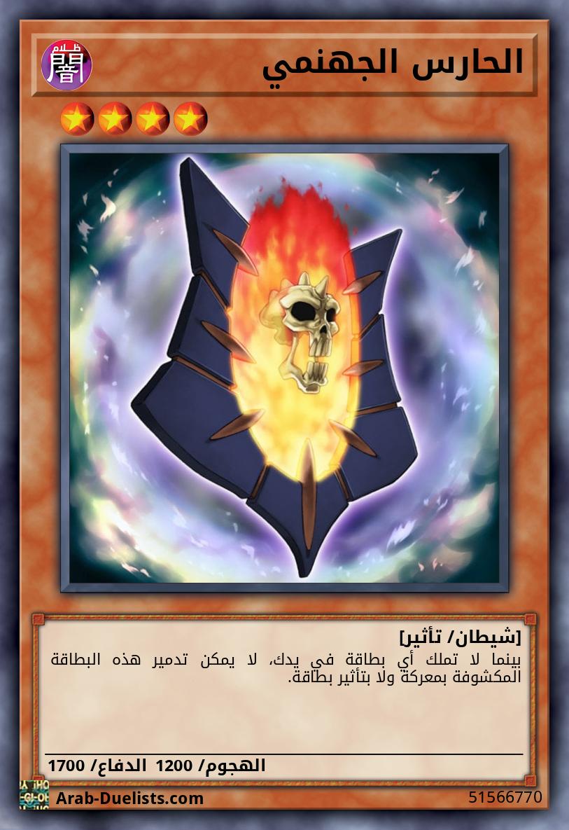 فعلها فقط إذا كنت لا تملك أي بطاقة في يدك. (1) استهدف وحش 1 "جهنمي" في مقبرتك. استدعه بشكل خاص، و دمر كل الوحوش المكشوفة في الملعب التي تملك نقاط هجوم أقل من هجوم الوحش الذي تم استدعاؤه بهذا التأثير. (2) لا يمكنك خوض مرحلة معركتك في الدور الذي فعلت فيه هذه البطاقة.