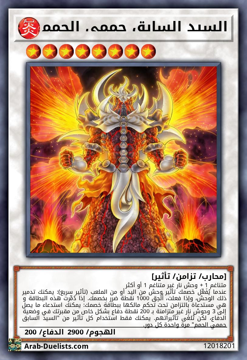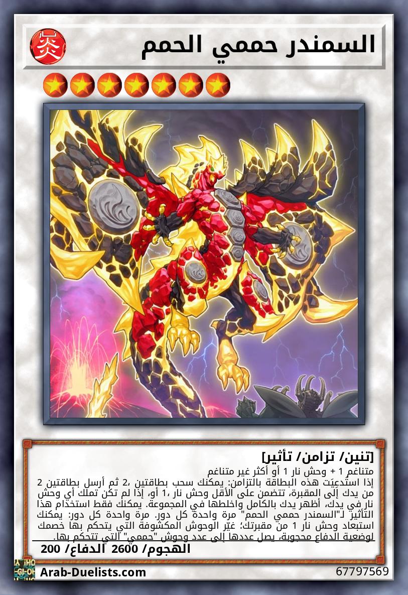 عندما تُدَمَر هذه البطاقة بالمعركة وتُرسَل إلى المقبرة: يمكنك إرسال وحشين 2 "حممي" من مجموعتك إلى المقبرة.