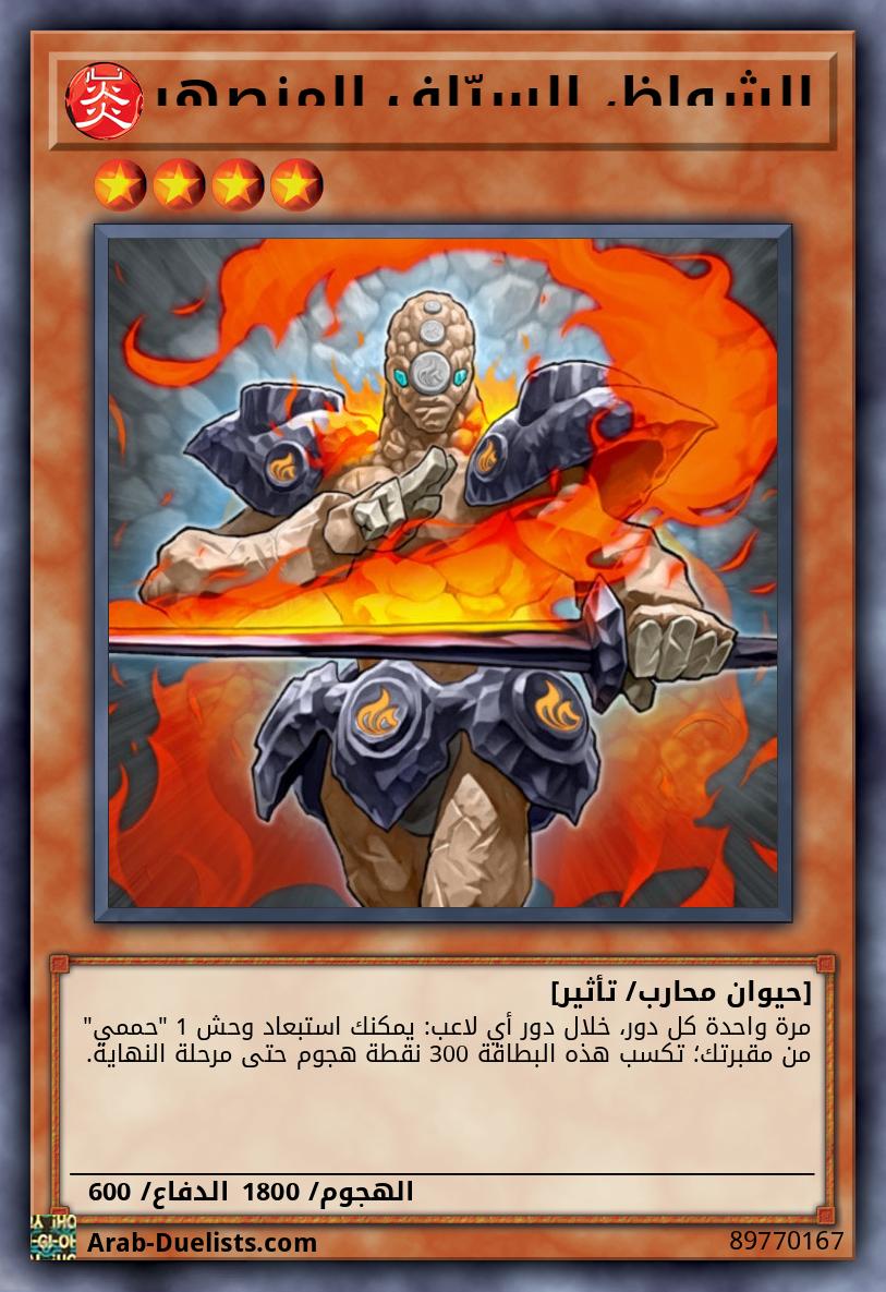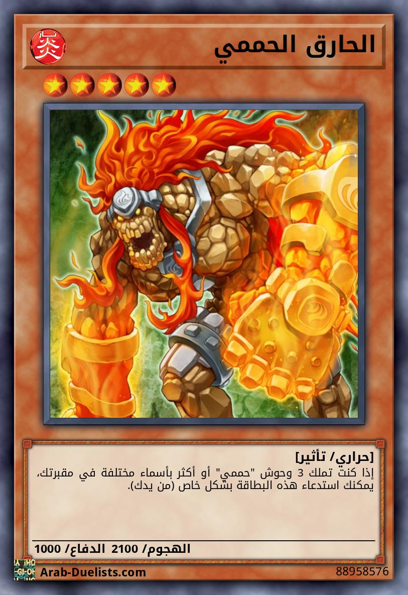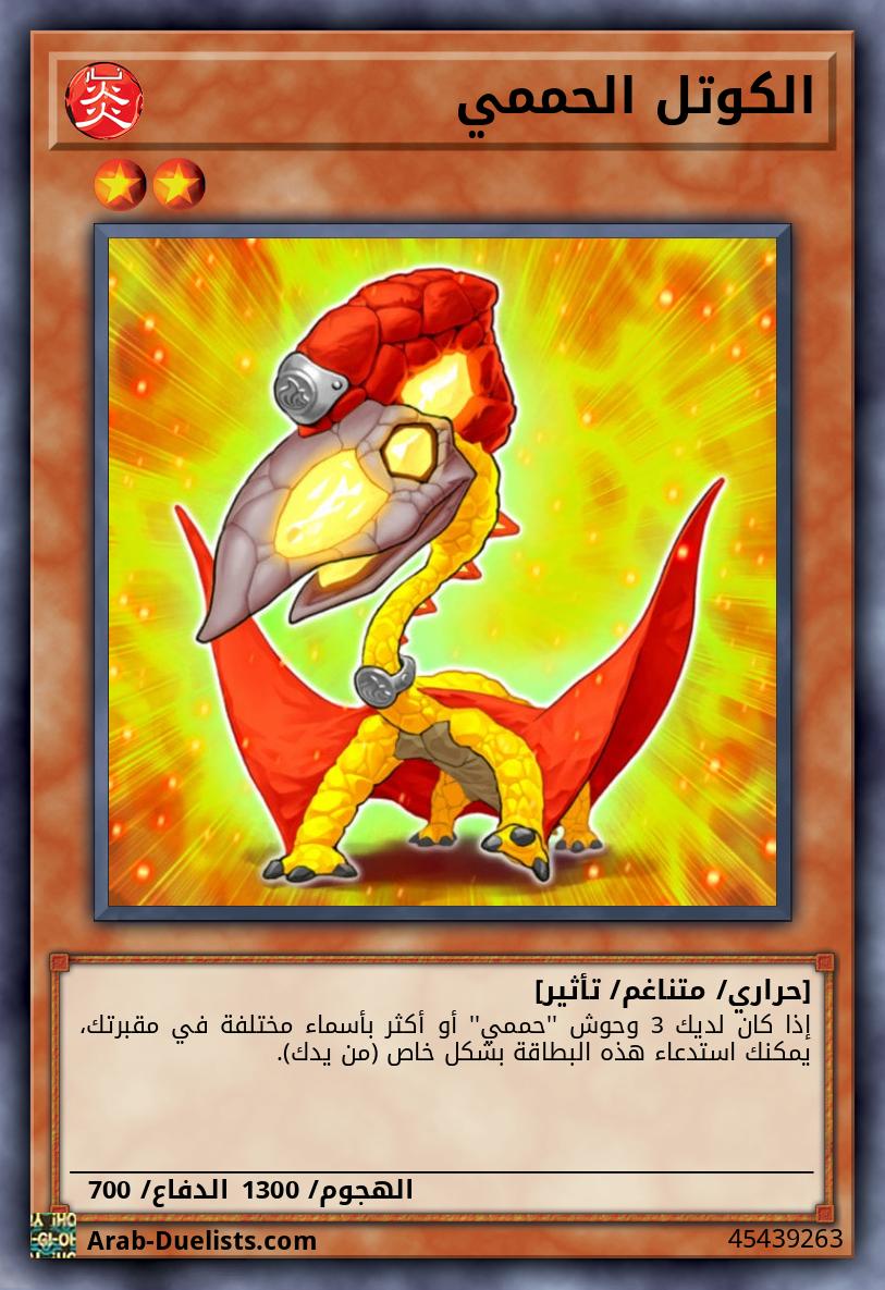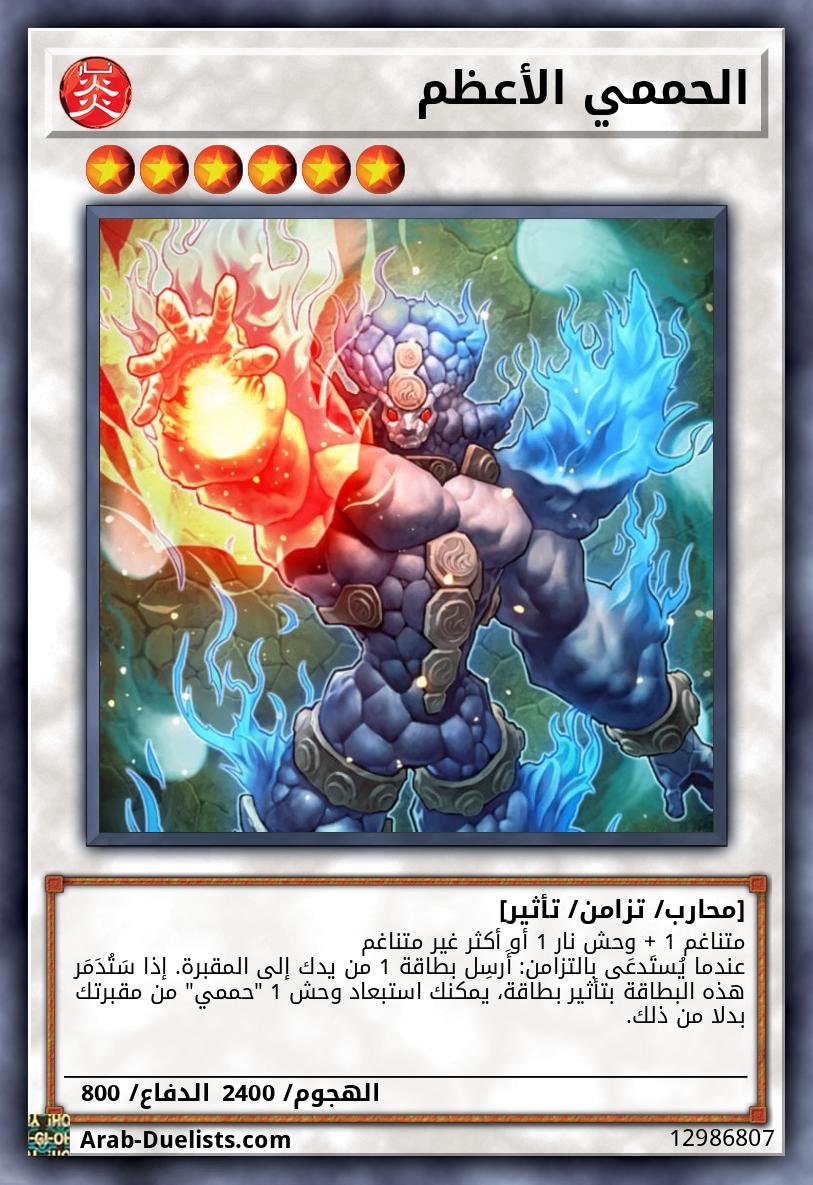مرة واحدة كل دور، خلال دور أي لاعب: يمكنك استبعاد وحش 1 "حممي" من مقبرتك؛ تكسب هذه البطاقة 300 نقطة هجوم حتى مرحلة النهاية.
