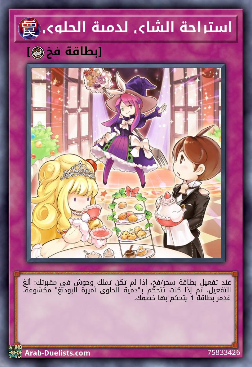 عند تفعيل بطاقة سحر/فخ، إذا لم تكن تملك وحوش في مقبرتك: ألغ التفعيل، ثم إذا كنت تتحكم بـ"دمية الحلوى أميرة البودنغ" مكشوفة، فدمر بطاقة 1 يتحكم بها خصمك.