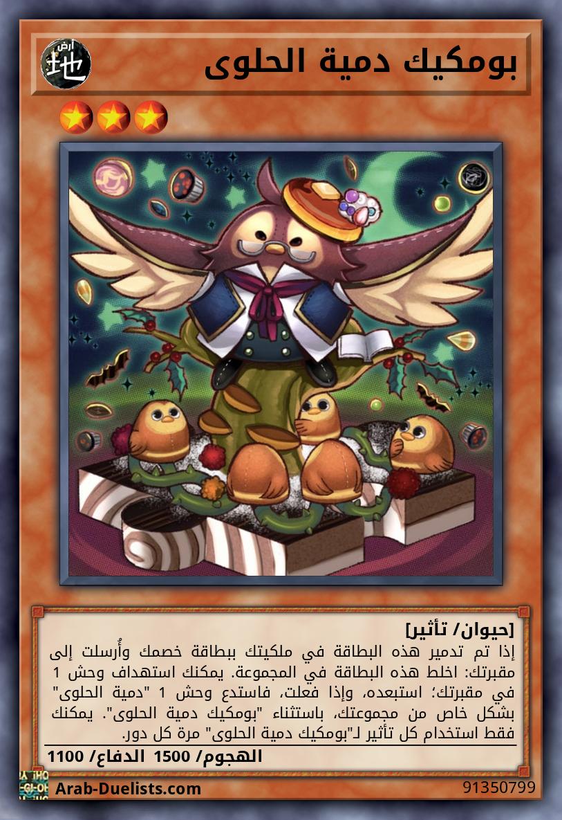 إذا تم تدمير هذه البطاقة في ملكيتك ببطاقة خصمك وأُرسلت إلى مقبرتك: اخلط هذه البطاقة في المجموعة. يمكنك استهداف وحش 1 في مقبرتك؛ استبعده، وإذا فعلت، فاستدع وحش 1 "دمية الحلوى" بشكل خاص من مجموعتك، باستثناء "بومكيك دمية الحلوى". يمكنك فقط استخدام كل تأثير لـ"بومكيك دمية الحلوى" مرة كل دور.