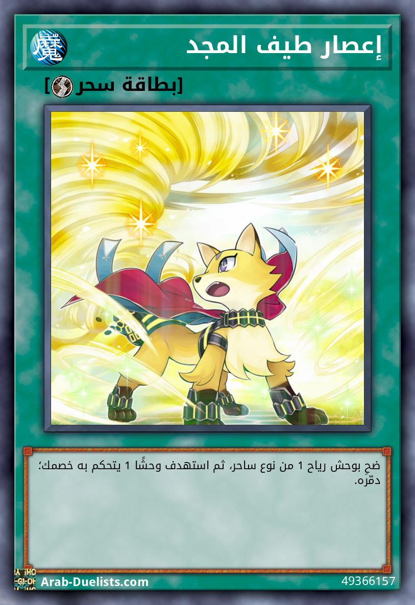 عندما تُفَعِل هذه البطاقة، يمكنك أيضا التضحية بوحش رياح 1 من نوع ساحر؛ استدع وحش 1 "طيف المجد" بشكل خاص من يدك أو مقبرتك، أو، إذا ضَحَيتَ بوحش في التفعيل، فيمكنك استدعاء وحش 1 "طيف المجد" بشكل خاص من مجموعتك بدلا من ذلك. يمكنك فقط تفعيل 1 "رياح طيف المجد" كل دور.