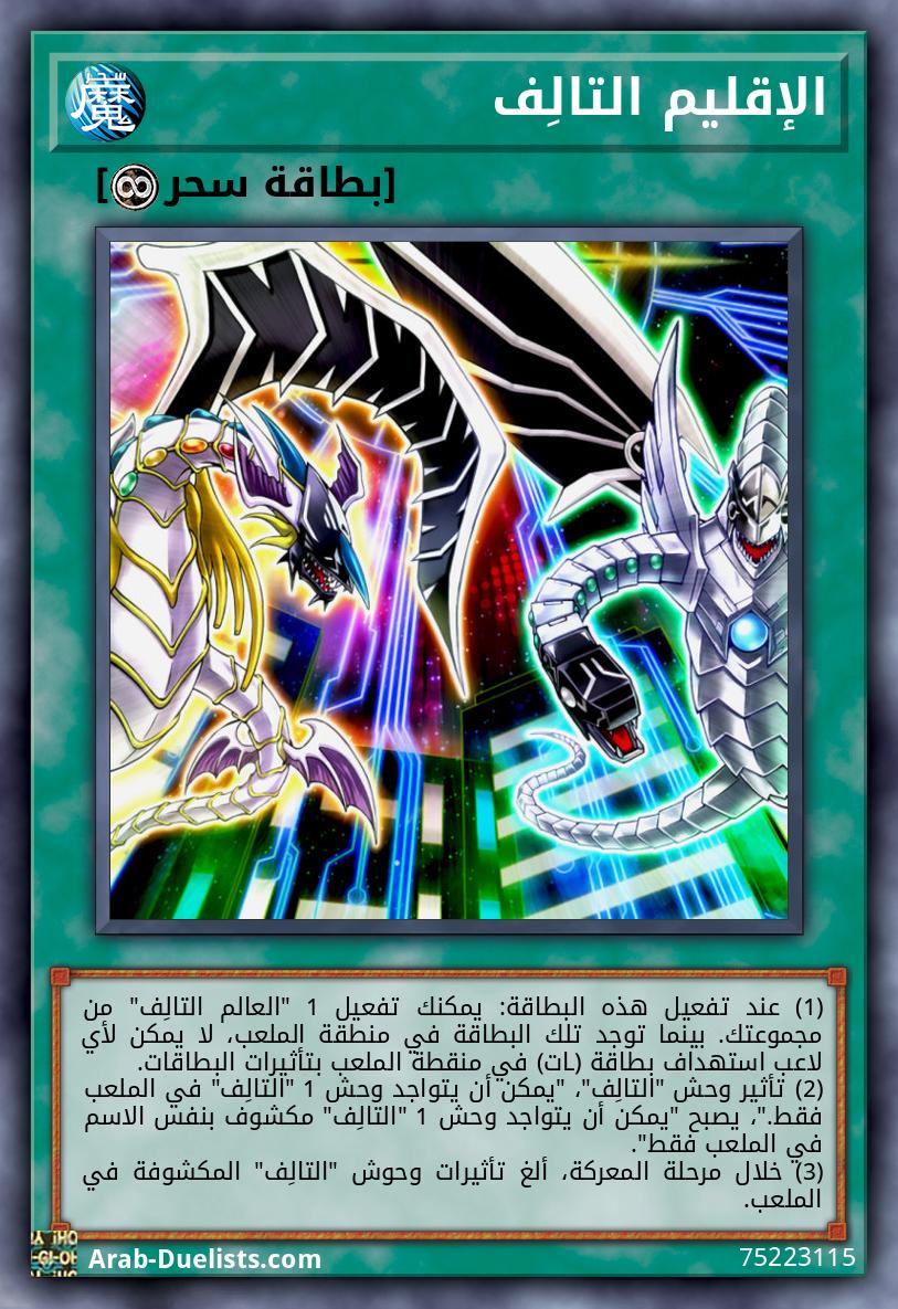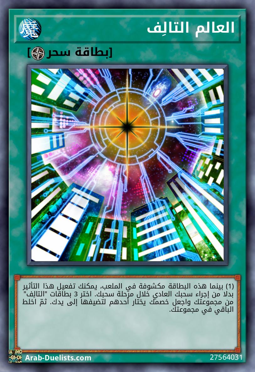 (1) عند تفعيل هذه البطاقة: يمكنك تفعيل 1 "العالم التالِف" من مجموعتك. بينما توجد تلك البطاقة في منطقة الملعب، لا يمكن لأي لاعب استهداف بطاقة (ـات) في منقطة الملعب بتأثيرات البطاقات. (2) تأثير وحش "التالِف"، "يمكن أن يتواجد وحش 1 "التالِف" في الملعب فقط."، يصبح "يمكن أن يتواجد وحش 1 "التالِف" مكشوف بنفس الاسم في الملعب فقط". (3) خلال مرحلة المعركة، ألغ تأثيرات وحوش "التالِف" المكشوفة في الملعب.