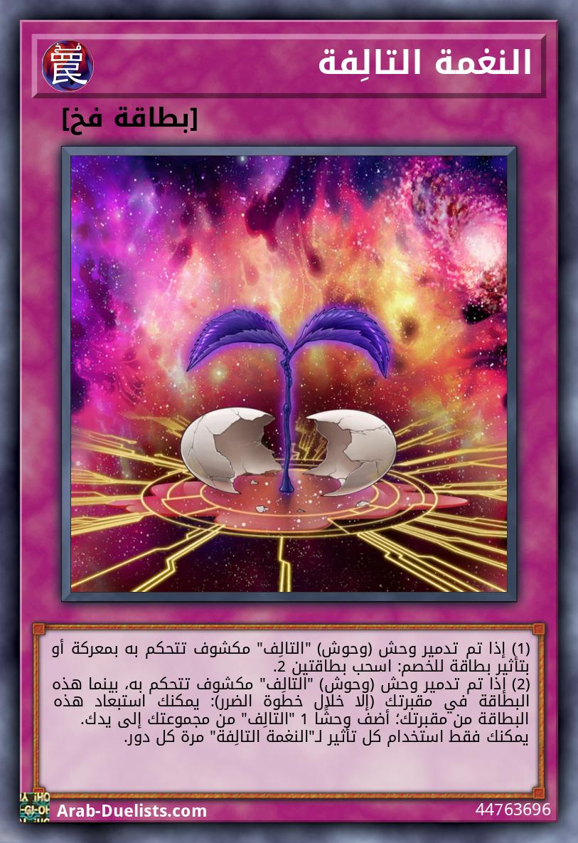 (1) إذا تم تدمير وحش (وحوش) "التالِف" مكشوف تتحكم به بمعركة أو بتأثير بطاقة للخصم: اسحب بطاقتين 2. (2) إذا تم تدمير وحش (وحوش) "التالِف" مكشوف تتحكم به، بينما هذه البطاقة في مقبرتك (إلا خلال خطوة الضرر): يمكنك استبعاد هذه البطاقة من مقبرتك؛ أضف وحشًا 1 "التالِف" من مجموعتك إلى يدك. يمكنك فقط استخدام كل تأثير لـ"النغمة التالِفة" مرة كل دور.