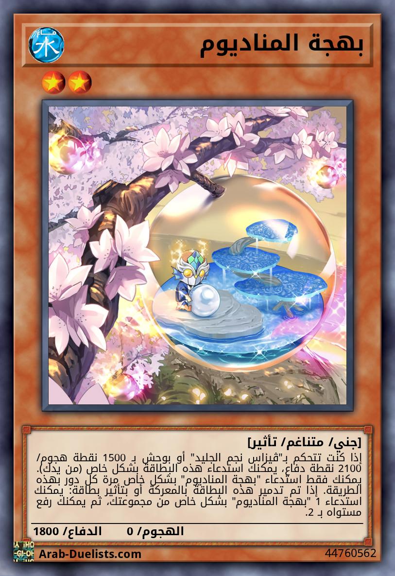 إذا كنت تتحكم بـ"ڤيزاس نجم الجليد" أو بوحش بـ 1500 نقطة هجوم/ 2100 نقطة دفاع، يمكنك استدعاء هذه البطاقة بشكل خاص (من يدك). يمكنك فقط استدعاء "بهجة المناديوم" بشكل خاص مرة كل دور بهذه الطريقة. إذا تم تدمير هذه البطاقة بالمعركة أو بتأثير بطاقة: يمكنك استدعاء 1 "بهجة المناديوم" بشكل خاص من مجموعتك، ثم يمكنك رفع مستواه بـ 2.
