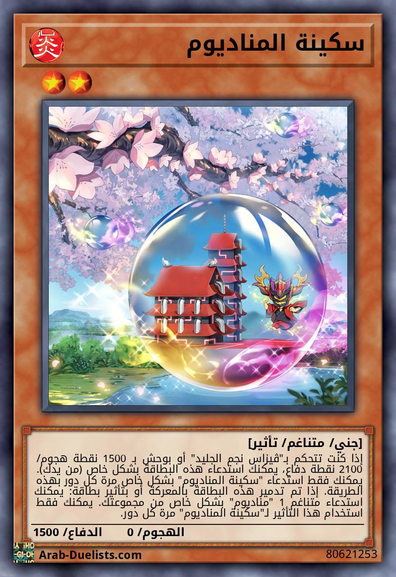 إذا كنت تتحكم بـ"ڤيزاس نجم الجليد" أو بوحش بـ 1500 نقطة هجوم/ 2100 نقطة دفاع، يمكنك استدعاء هذه البطاقة بشكل خاص (من يدك). يمكنك فقط استدعاء "سكينة المناديوم" بشكل خاص مرة كل دور بهذه الطريقة. إذا تم تدمير هذه البطاقة بالمعركة أو بتأثير بطاقة: يمكنك استدعاء متناغم 1 "مناديوم" بشكل خاص من مجموعتك. يمكنك فقط استخدام هذا التأثير لـ"سكينة المناديوم" مرة كل دور.