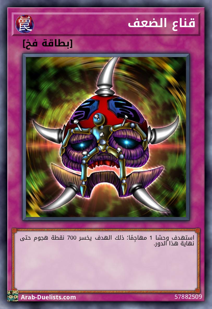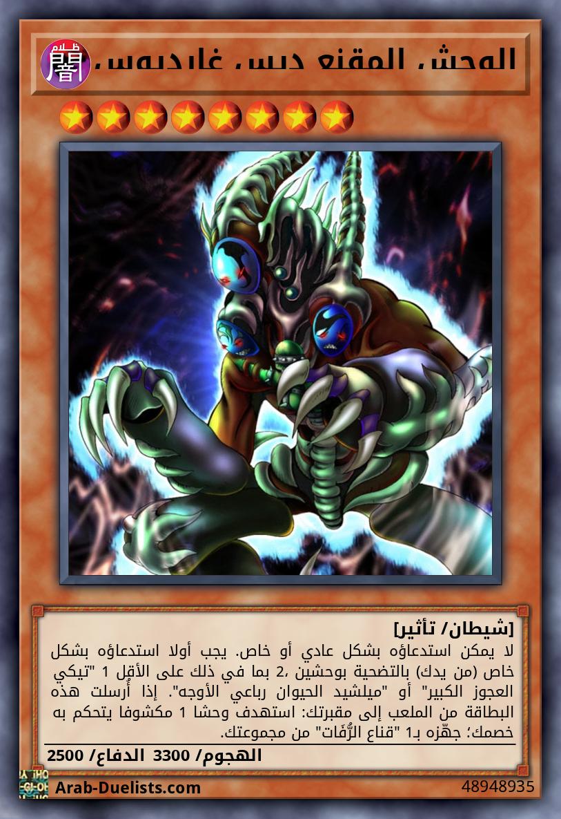 لا يمكن للوحش المجهز بهذه البطاقة أن يهاجم. مرة واحدة كل دور، خلال مرحلة استعدادك: ألحق 500 ضرر للاعب المتحكم في الوحش المُجهز بهذه البطاقة.