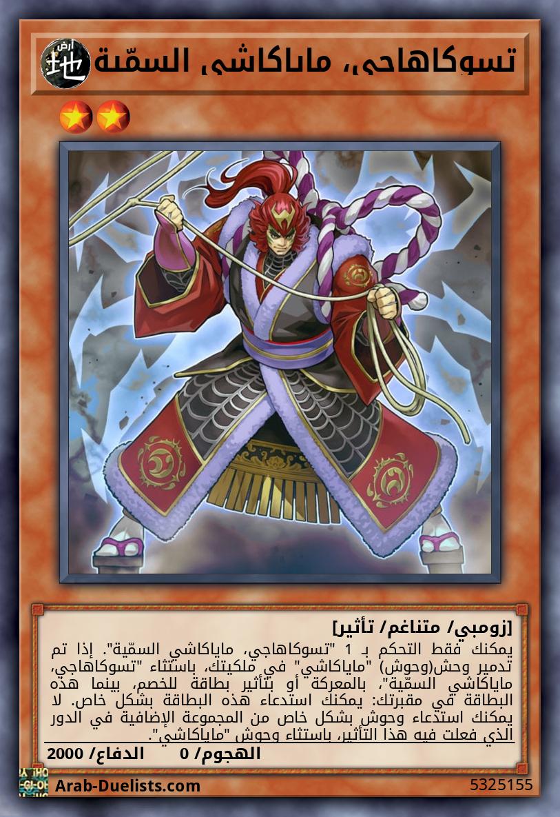يمكنك فقط التحكم بـ 1 "تسوكاهاجي، ماياكاشي السمّية". إذا تم تدمير وحش(وحوش) "ماياكاشي" في ملكيتك، باستثاء "تسوكاهاجي، ماياكاشي السمّية"، بالمعركة أو بتأثير بطاقة للخصم، بينما هذه البطاقة في مقبرتك: يمكنك استدعاء هذه البطاقة بشكل خاص. لا يمكنك استدعاء وحوش بشكل خاص من المجموعة الإضافية في الدور الذي فعلت فيه هذا التأثير، باستثاء وحوش "ماياكاشي".