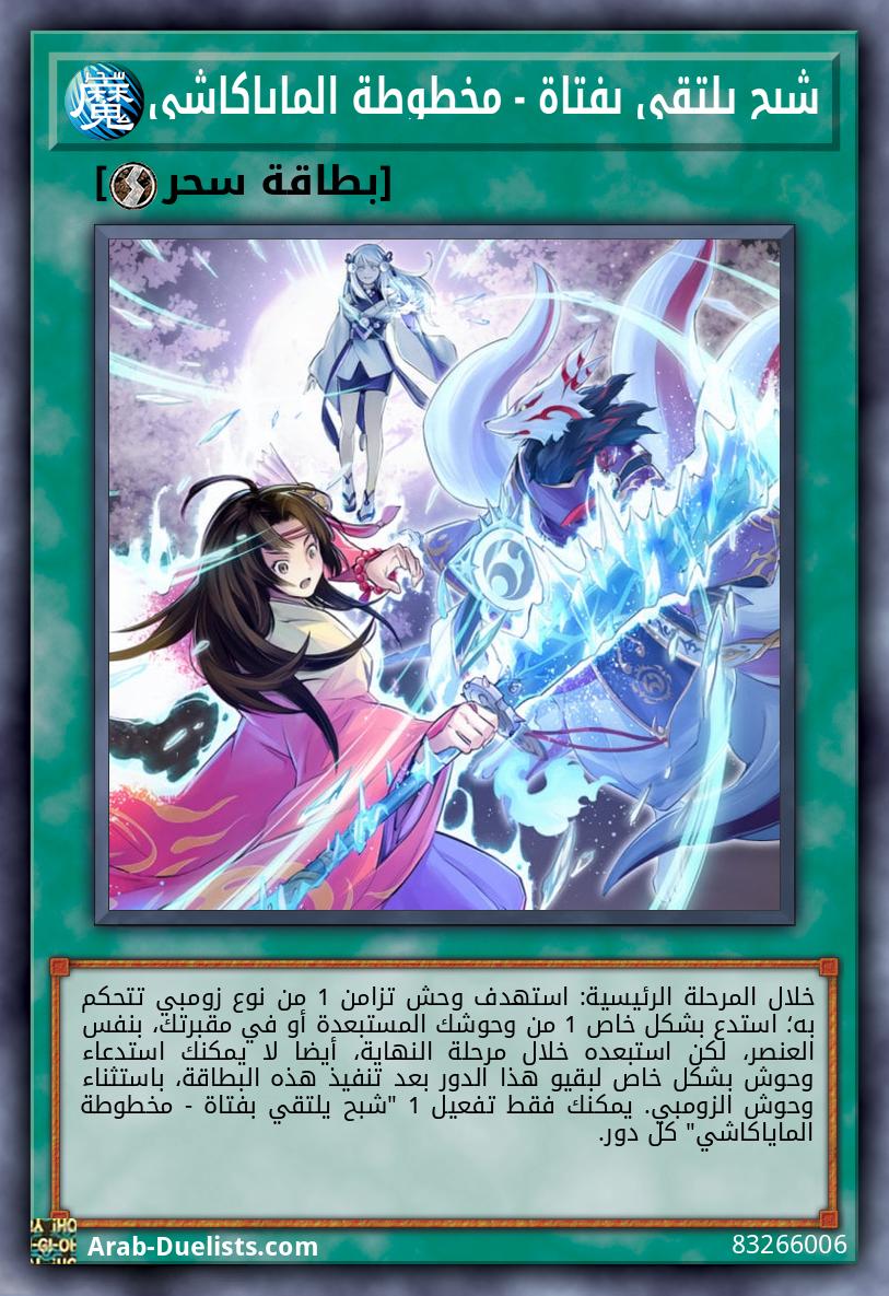 خلال المرحلة الرئيسية: استهدف وحش تزامن 1 من نوع زومبي تتحكم به؛ استدع بشكل خاص 1 من وحوشك المستبعدة أو في مقبرتك، بنفس العنصر، لكن استبعده خلال مرحلة النهاية، أيضا لا يمكنك استدعاء وحوش بشكل خاص لبقيو هذا الدور بعد تنفيذ هذه البطاقة، باستثناء وحوش الزومبي. يمكنك فقط تفعيل 1 "شبح يلتقي بفتاة - مخطوطة الماياكاشي" كل دور.