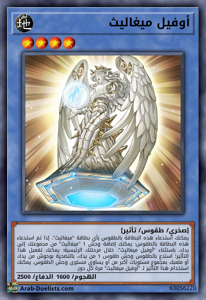 يمكنك استدعاء هذه البطاقة بالطقوس بأي بطاقة "ميغاليث". إذا تم استدعاء هذه البطاقة بالطقوس: يمكنك إضافة وحش 1 "ميغاليث" من مجموعتك إلى يدك، باستثناء "أوفيل ميغاليث". خلال مرحلتك الرئيسية: يمكنك تفعيل هذا التأثير؛ استدعِ بالطقوس وحش طقوس 1 من يدك، بالتضحية بوحوش من يدك أو ملعبك بمجموع مستويات أكبر من أو يساوي مستوى وحش الطقوس. يمكنك استخدام هذا التأثير لـ "أوفيل ميغاليث" مرة كل دور.