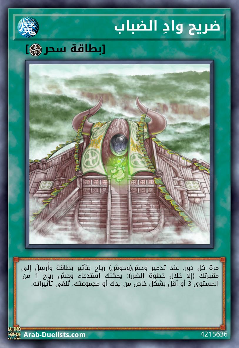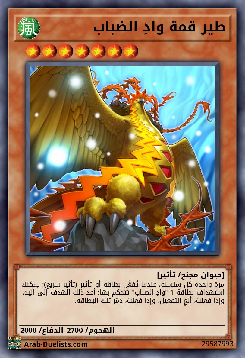 متناغم 1 + وحش "وادِ الضباب" غير متناغم 1 أو أكثر مرة واحدة كل دور، يمكنك استهداف وإعادة بطاقة 1 تتحكم بها إلى يدك، وتكسب هذه البطاقة 500 نقطة هجوم حتى مرحلة النهاية. يمكن تفعيل هذا التأثير خلال دور أي لاعب.