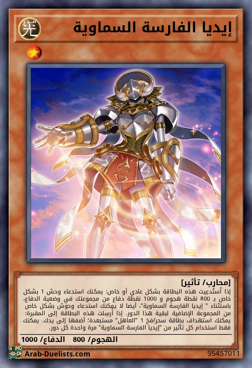 إذا اُستُدعِيت هذه البطاقة بشكل عادي أو خاص: يمكنك استدعاء وحش 1 بشكل خاص بـ 800 نقطة هجوم و 1000 نقطة دفاع من مجموعتك في وضعية الدفاع، باستثناء " إيديا الفارسة السماوية"، أيضا لا يمكنك استدعاء وحوش بشكل خاص من المجموعة الإضافية لبقية هذا الدور. إذا أُرسِلت هذه البطاقة إلى المقبرة: يمكنك استهداف بطاقة سحر/فخ 1 "العاهل" مستبعدة؛ أضفها إلى يدك. يمكنك فقط استخدام كل تأثير من "إيديا الفارسة السماوية" مرة واحدة كل دور.
