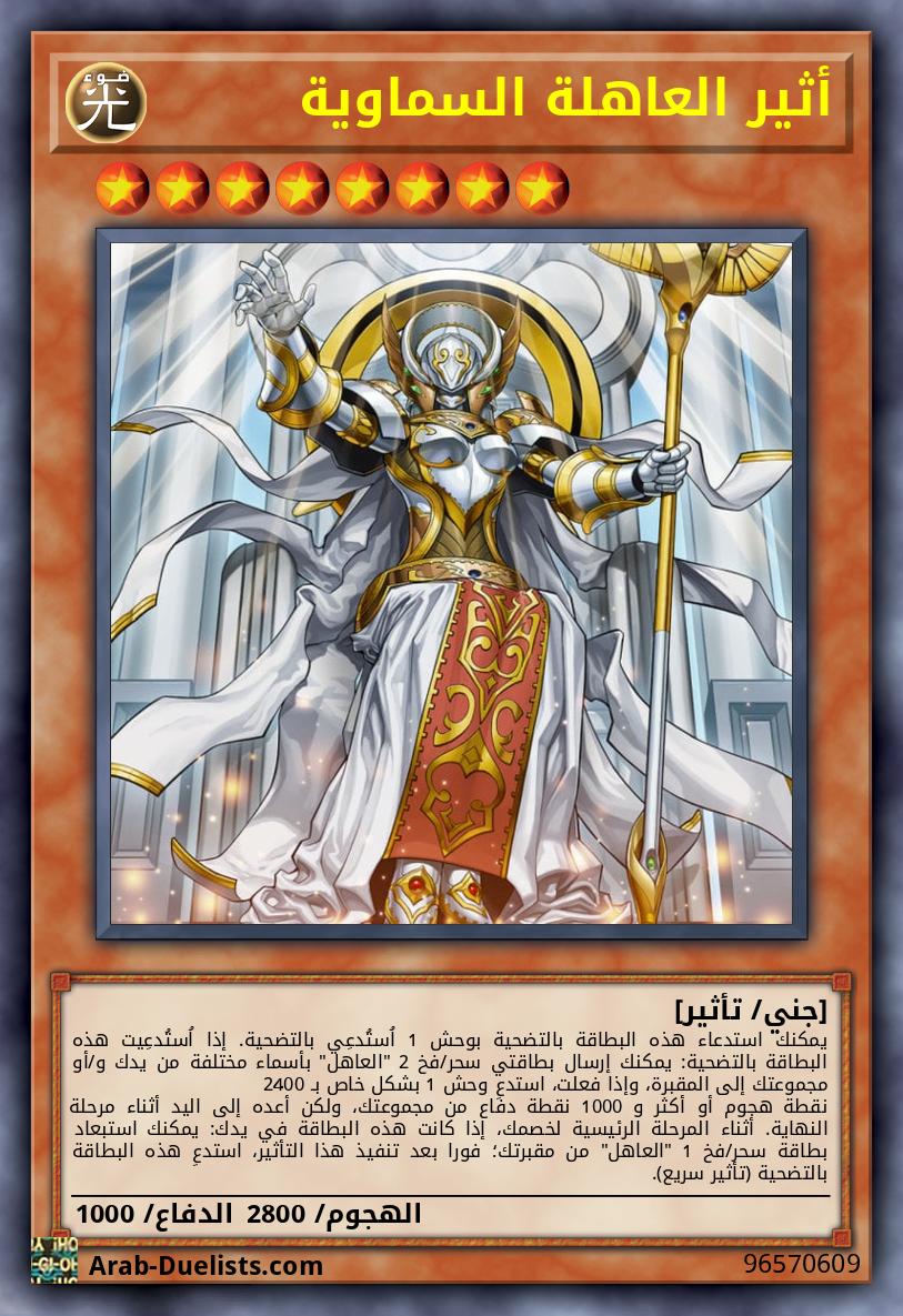 يمكنك استدعاء هذه البطاقة بالتضحية بوحش 1 اُستُدعِي بالتضحية. إذا اُستُدعِيت هذه البطاقة بالتضحية: يمكنك إرسال بطاقتي سحر/فخ 2 "العاهل" بأسماء مختلفة من يدك و/أو مجموعتك إلى مقبرتك، وإذا فعلت، اخلط بطاقة 1 من يد خصمك (عشوائيًا)، أو مقبرته، أو ملعبه في المجموعة. مرة واحدة كل دور، خلال المرحلة الرئيسية لأي لاعب، إذا كانت هذه البطاقة في مقبرتك: يمكنك رمي بطاقة سحر/فخ 1 "العاهل"، استهدف وحشًا 1 في مقبرتك بـ 2400 نقطة هجوم أو أكثر و 1000 نقطة دفاع؛ أضفه إلى يدك.