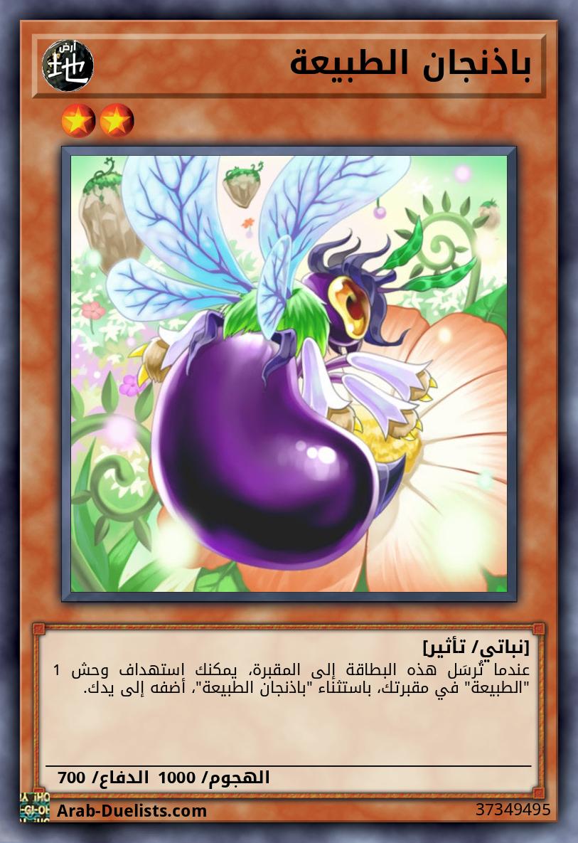 عندما تُرسَل هذه البطاقة إلى المقبرة، يمكنك استهداف وحش 1 "الطبيعة" في مقبرتك، باستثناء "باذنجان الطبيعة"، أضفه إلى يدك.