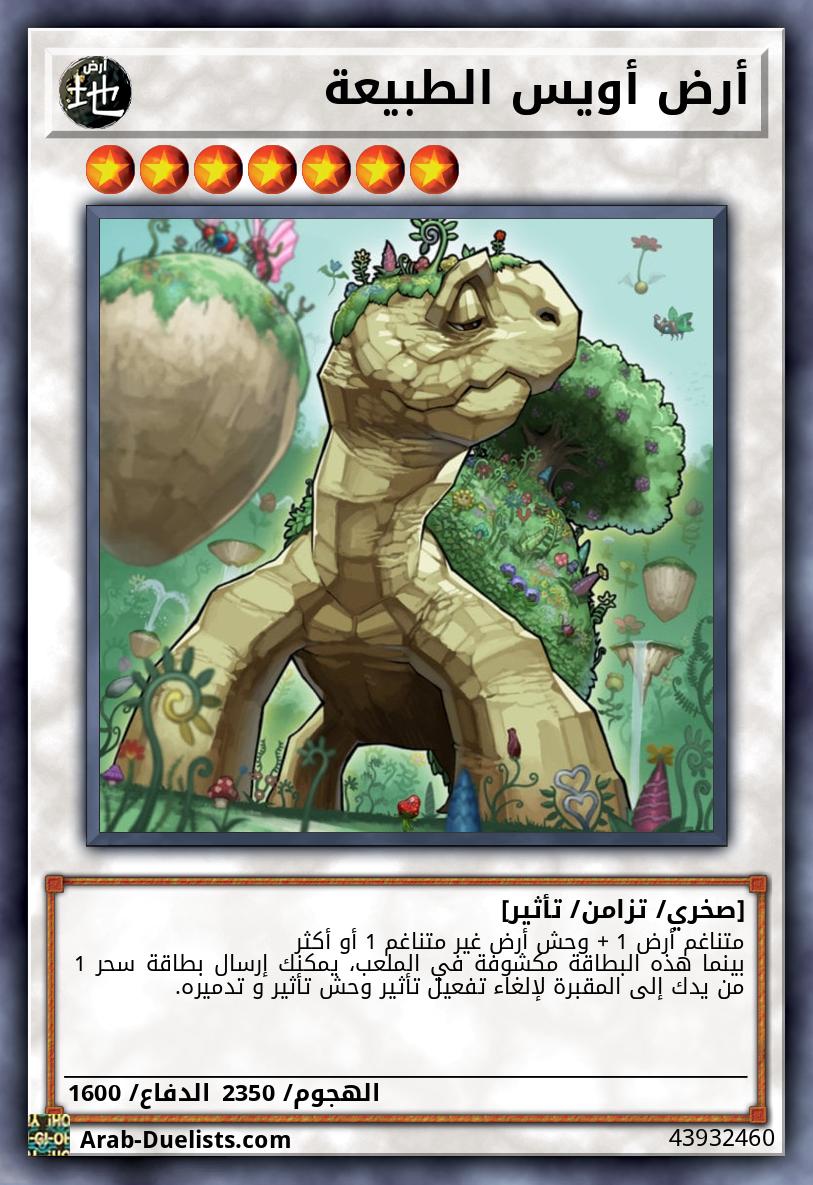 بينما تتحكم بوحش(وحوش) "الطبيعة" مكشوف آخر، لا يمكن لخصمك استهداف هذه البطاقة كهدف للهجوم.يتلقى خصمك أي ضرر معركة كنت ستتلقاه من المعارك التي تتضمن وحش "الطبيعة" مكشوف تتحكم به، باستثناء هذه البطاقة.