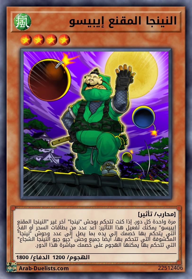مرة واحدة كل دور: يمكنك إرسال بطاقة فخ 1 من يدك إلى المقبرة؛ استدعِ بشكل خاص وحش 1 "نينجا" من مجموعتك مكشوفا في وضعية الدفاع أو محجوبا في وضعية الدفاع.