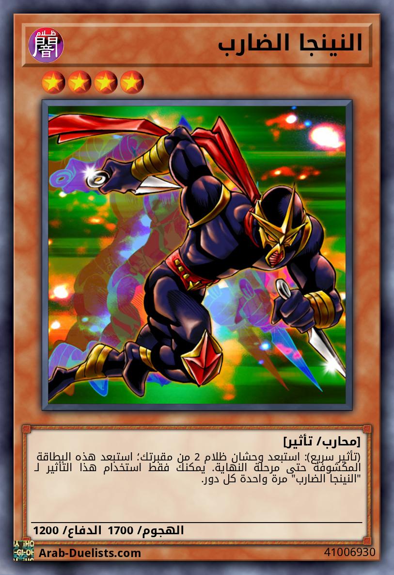 (تأثير سريع): استبعد وحشان ظلام 2 من مقبرتك؛ استبعد هذه البطاقة المكشوفة حتى مرحلة النهاية. يمكنك فقط استخدام هذا التأثير لـ "النينجا الضارب" مرة واحدة كل دور.