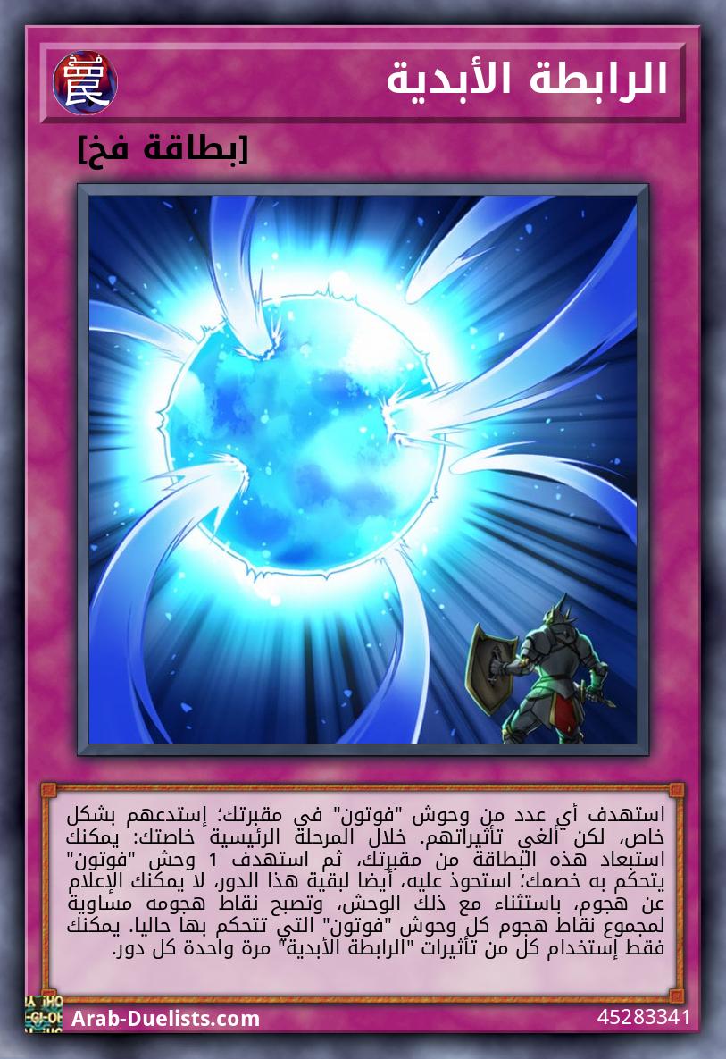 استهدف أي عدد من وحوش "فوتون" في مقبرتك؛ إستدعهم بشكل خاص، لكن ألغي تأثيراتهم. خلال المرحلة الرئيسية خاصتك: يمكنك استبعاد هذه البطاقة من مقبرتك، ثم استهدف 1 وحش "فوتون" يتحكم به خصمك؛ استحوذ عليه، أيضا لبقية هذا الدور، لا يمكنك الإعلام عن هجوم، باستثناء مع ذلك الوحش، وتصبح نقاط هجومه مساوية لمجموع نقاط هجوم كل وحوش "فوتون" التي تتحكم بها حاليا. يمكنك فقط إستخدام كل من تأثيرات "الرابطة الأبدية" مرة واحدة كل دور.