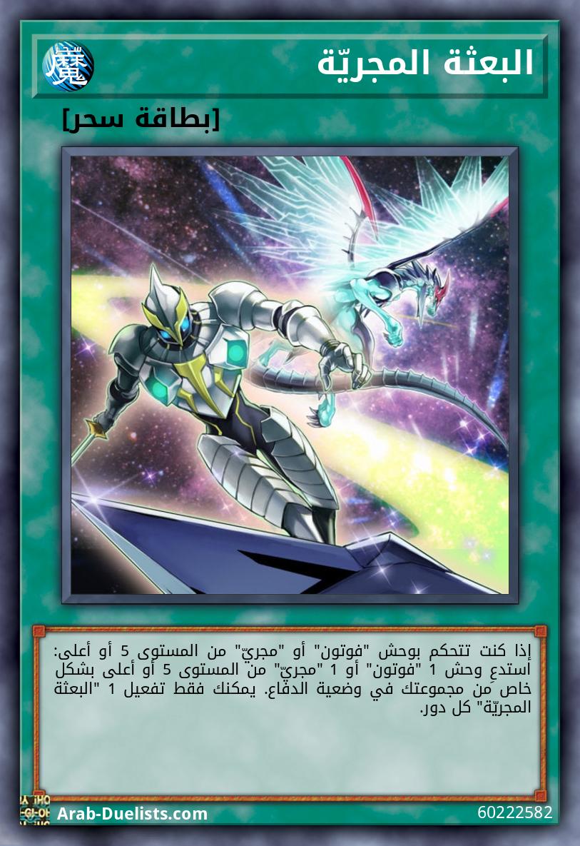 إذا كنت تتحكم بوحش "فوتون" أو "مجريّ" من المستوى 5 أو أعلى: استدعِ وحش 1 "فوتون" أو 1 "مجريّ" من المستوى 5 أو أعلى بشكل خاص من مجموعتك في وضعية الدفاع. يمكنك فقط تفعيل 1 "البعثة المجريّة" كل دور.