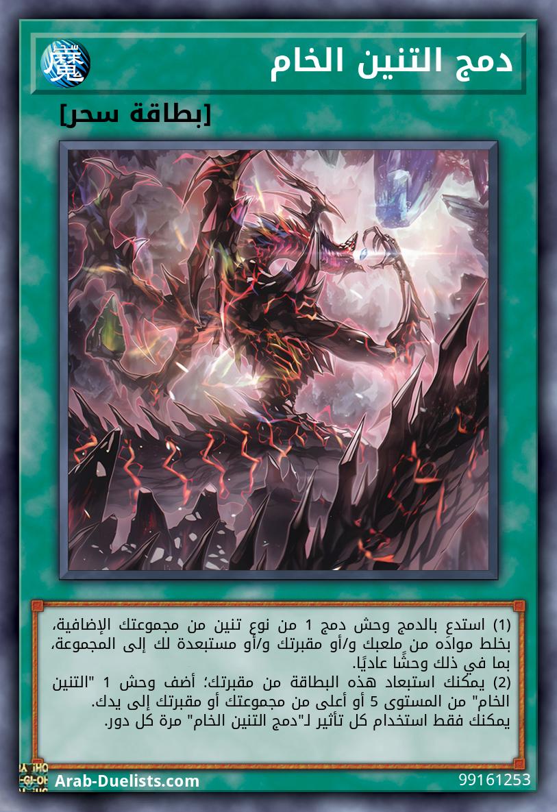 (1) استدعِ بالدمج وحش دمج 1 من نوع تنين من مجموعتك الإضافية، بخلط مواده من ملعبك و/أو مقبرتك و/أو مستبعدة لك إلى المجموعة، بما في ذلك وحشًا عاديًا. (2) يمكنك استبعاد هذه البطاقة من مقبرتك؛ أضف وحش 1 "التنين الخام" من المستوى 5 أو أعلى من مجموعتك أو مقبرتك إلى يدك. يمكنك فقط استخدام كل تأثير لـ"دمج التنين الخام" مرة كل دور.