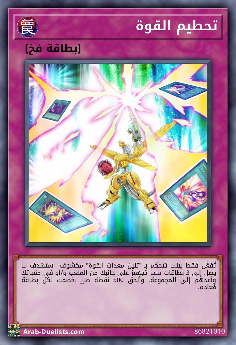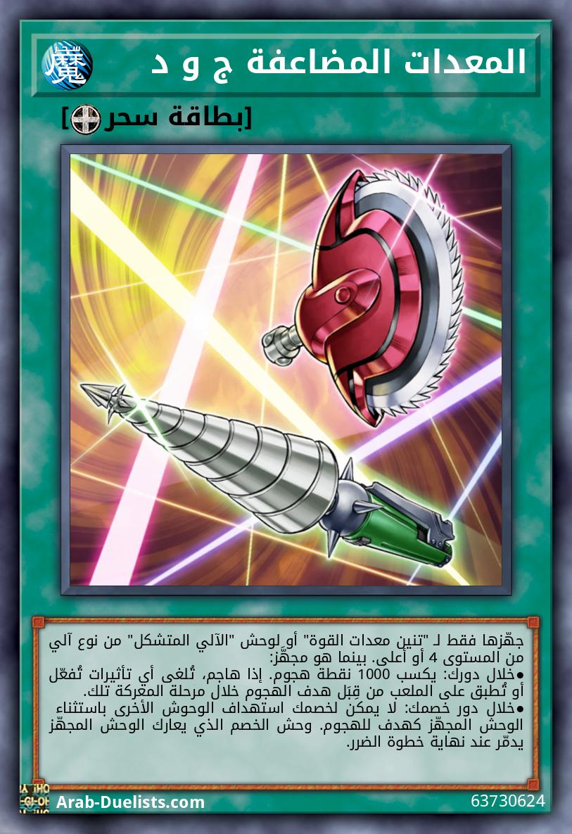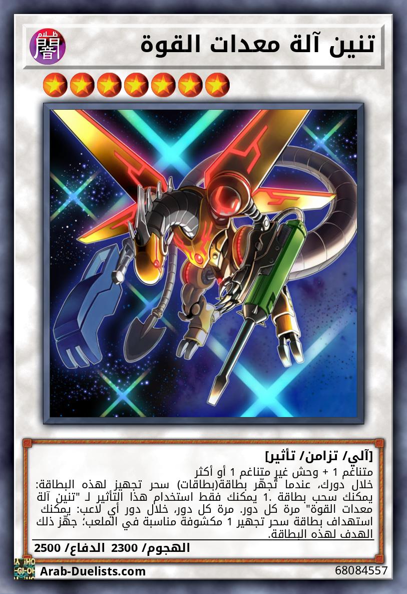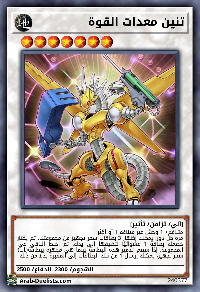 جهّزها فقط لـ "تنين معدات القوة" أو لوحش "الآلي المتشكل" من نوع آلي من المستوى 4 أو أعلى. بينما هو مجهَّز: ●خلال دورك: يكسب 1000 نقطة هجوم. إذا هاجم، تُلغى أي تأثيرات تُفعّل أو تُطبق على الملعب من قِبَل هدف الهجوم خلال مرحلة المعركة تلك. ●خلال دور خصمك: لا يمكن لخصمك استهداف الوحوش الأخرى باستثناء الوحش المجهّز كهدف للهجوم. وحش الخصم الذي يعارك الوحش المجهّز يدمّر عند نهاية خطوة الضرر.