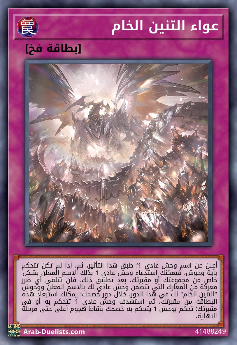 وحش 1 "التنين الخام" + وحش عادي 1 أو أكثر (1) يكسب 1000 نقطة هجوم لكل وحش عادي اُستخدمَ لاستدعائه بالدمج. (2) تُلغَى التأثيرات المُفعّلة للوحوش التي يتحكم بها خصمك، والتي يكون لها مستوى/رتبة/تصنيف ترابط أقل من أو يساوي عدد الوحوش العادية في ملعبك ومقبرتك. (3) إذا تم إرسال هذه البطاقة من الملعب إلى المقبرة: فيمكنك استدعاء وحش عادي 1 بشكل خاص من مجموعتك في وضعية الدفاع.