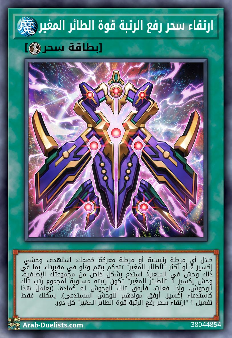 خلال أي مرحلة رئيسية أو مرحلة معركة خصمك: استهدف وحشي إكسيز 2 أو أكثر "الطائر المغير" تتحكم بهم و/أو في مقبرتك، بما في ذلك وحش في الملعب؛ استدع بشكل خاص من مجموعتك الإضافية، وحش إكسيز 1 "الطائر المغير" تكون رتبته مساوية لمجموع رتب تلك الوحوش، وإذا فعلت، فأرفق تلك الوحوش له كمادة. (يعامل هذا كاستدعاء إكسيز. أرفق موادهم للوحش المستدعى). يمكنك فقط تفعيل 1 "ارتقاء سحر رفع الرتبة قوة الطائر المغير" كل دور.