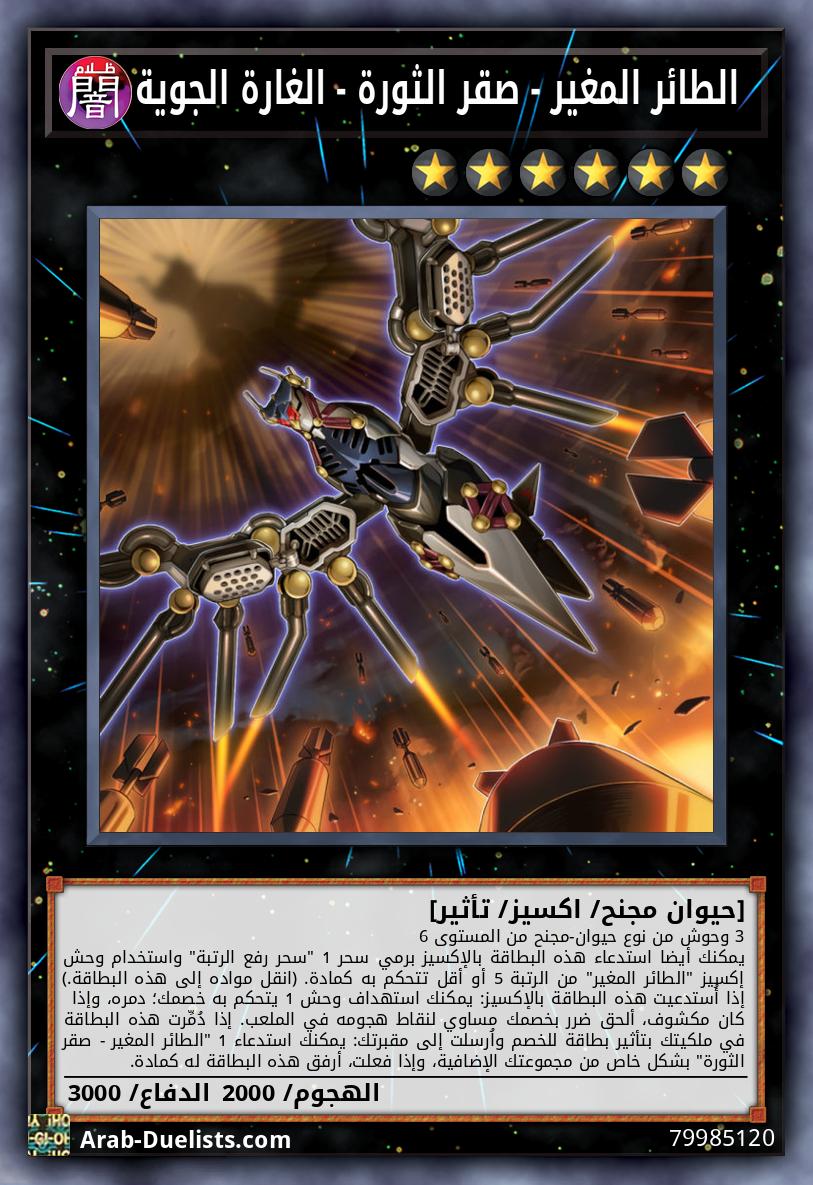 3 وحوش من نوع حيوان-مجنح من المستوى 6 يمكنك أيضا استدعاء هذه البطاقة بالإكسيز برمي سحر 1 "سحر رفع الرتبة" واستخدام وحش إكسيز "الطائر المغير" من الرتبة 5 أو أقل تتحكم به كمادة. (انقل مواده إلى هذه البطاقة.) إذا أُستدعيت هذه البطاقة بالإكسيز: يمكنك استهداف وحش 1 يتحكم به خصمك؛ دمره، وإذا كان مكشوف، ألحق ضرر بخصمك مساوي لنقاط هجومه في الملعب. إذا دُمِّرت هذه البطاقة في ملكيتك بتأثير بطاقة للخصم واُرسلت إلى مقبرتك: يمكنك استدعاء 1 "الطائر المغير - صقر الثورة" بشكل خاص من مجموعتك الإضافية، وإذا فعلت، أرفق هذه البطاقة له كمادة.