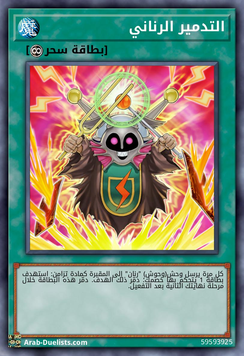 كل مرة يرسل وحش(وحوش) "رنان" إلى المقبرة كمادة تزامن: استهدف بطاقة 1 يتحكم بها خصمك؛ دمّر ذلك الهدف. دمّر هذه البطاقة خلال مرحلة نهايتك الثانية بعد التفعيل.
