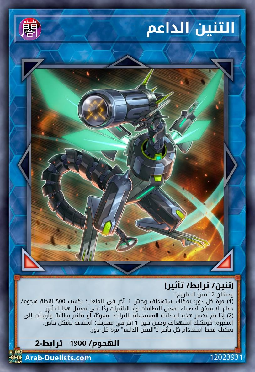 وحشان 2 "تنين الصاروخ" (1) مرة كل دور: يمكنك استهداف وحش 1 آخر في الملعب؛ يكسب 500 نقطة هجوم/ دفاع. لا يمكن لخصمك تفعيل البطاقات ولا التأثيرات ردًا على تفعيل هذا التأثير. (2) إذا تم تدمير هذه البطاقة المستدعاة بالترابط بمعركة أو بتأثير بطاقة وأُرسِلَت إلى المقبرة: فيمكنك استهداف وحش تنين 1 آخر في مقبرتك؛ استدعه بشكل خاص. يمكنك فقط استخدام كل تأثير لـ"التنين الداعم" مرة كل دور.