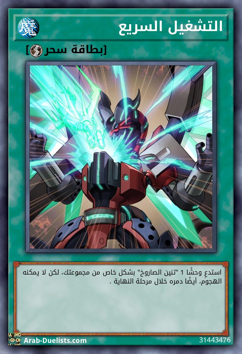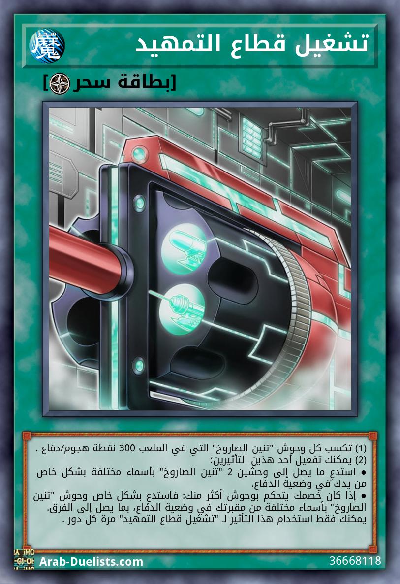 (1) تكسب كل وحوش "تنين الصاروخ" التي في الملعب 300 نقطة هجوم/دفاع . (2) يمكنك تفعيل أحد هذين التأثيرين؛ ● استدعِ ما يصل إلى وحشين 2 "تنين الصاروخ" بأسماء مختلفة بشكل خاص من يدك في وضعية الدفاع. ● إذا كان خصمك يتحكم بوحوش أكثر منك: فاستدعِ بشكل خاص وحوش "تنين الصاروخ" بأسماء مختلفة من مقبرتك في وضعية الدفاع، بما يصل إلى الفرق. يمكنك فقط استخدام هذا التأثير لـ "تشغيل قطاع التمهيد" مرة كل دور .