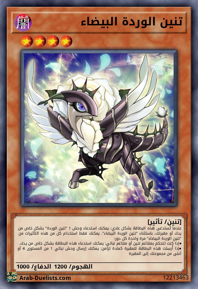 عندما تُستدعَى هذه البطاقة بشكل عادي: يمكنك استدعاء وحش 1 "تنين الوردة" بشكل خاص من يدك أو مقبرتك، باستثناء "تنين الوردة البيضاء". يمكنك فقط استخدام كل من هذه التأثيرات من "تنين الوردة البيضاء" مرة واحدة كل دور: ●إذا كنت تتحكم بمتناغم تنين أو متناغم نباتي: يمكنك استدعاء هذه البطاقة بشكل خاص من يدك. ●إذا أُرسِلت هذه البطاقة للمقبرة كمادة تزامن: يمكنك إرسال وحش نباتي 1 من المستوى 4 أو أعلى من مجموعتك إلى المقبرة