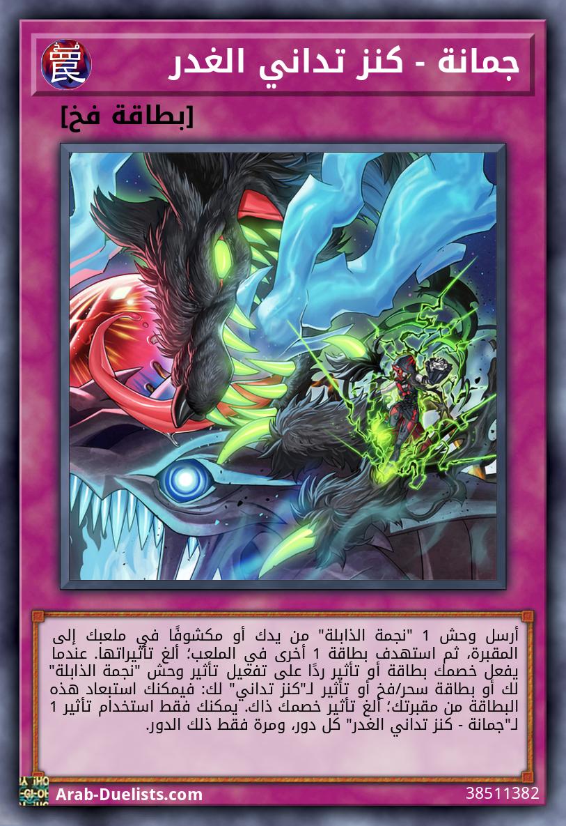 أرسل وحش 1 "نجمة الذابلة" من يدك أو مكشوفًا في ملعبك إلى المقبرة، ثم استهدف بطاقة 1 أخرى في الملعب؛ ألغ تأثيراتها. عندما يفعل خصمك بطاقة أو تأثير ردًا على تفعيل تأثير وحش "نجمة الذابلة" لك أو بطاقة سحر/فخ أو تأثير لـ"كنز تداني" لك: فيمكنك استبعاد هذه البطاقة من مقبرتك؛ ألغ تأثير خصمك ذاك. يمكنك فقط استخدام تأثير 1 لـ"جمانة - كنز تداني الغدر" كل دور، ومرة فقط ذلك الدور.