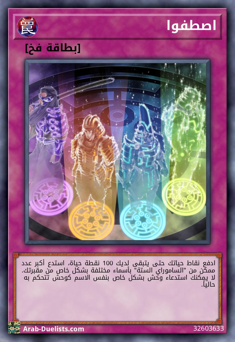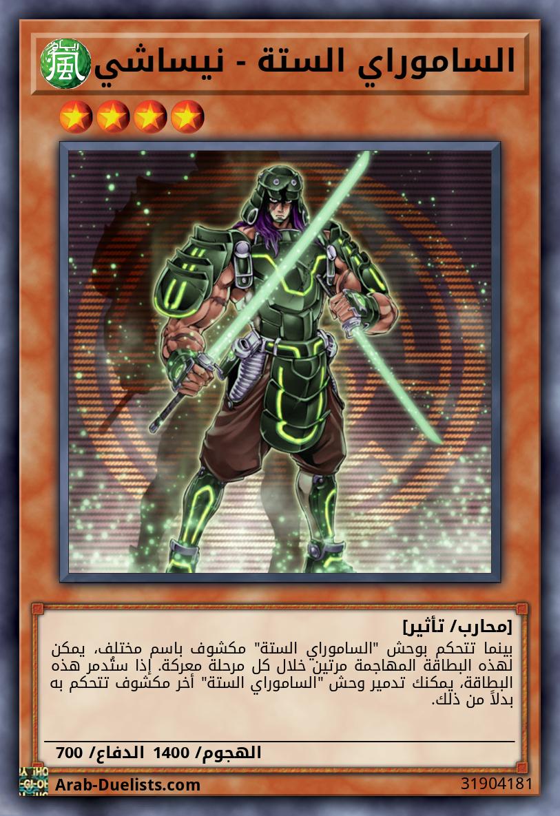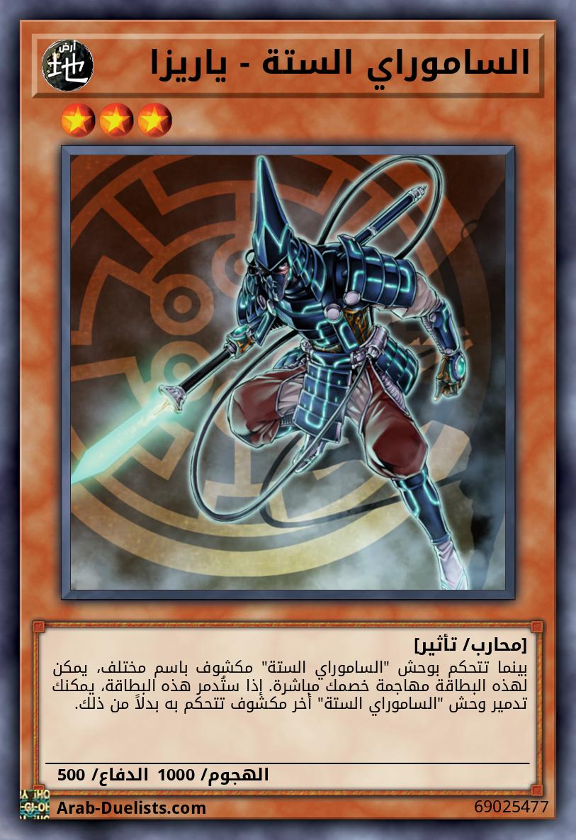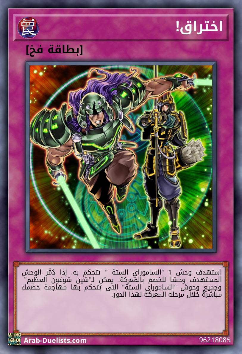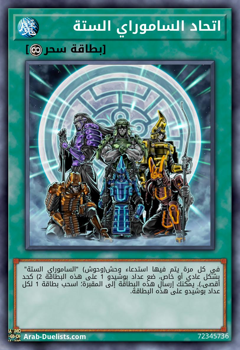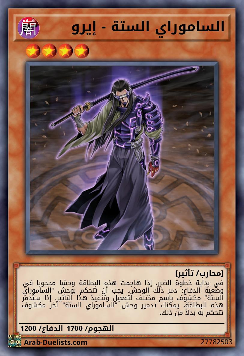إذا كان الوحش الوحيد الذى تتحكم به هو وحش 1 "الساموراي الستة" مكشوف في وضعية الهجوم: استهدف بطاقتين 2 يتحكم بهما خصمك؛ أعد تلك الأهداف إلى اليد.