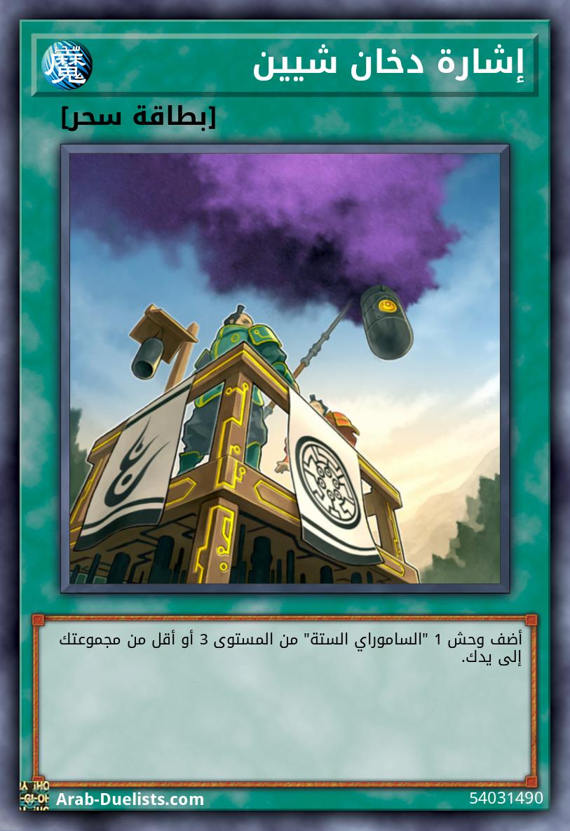 مرة كل دور: يمكنك استهداف بطاقة سحر/فخ 1؛ دمر ذلك الهدف. يجب أن تتحكم بوحش "الساموراي الستة" مكشوف باسم مختلف لتفعيل وتنفيذ هذا التأثير. لا يمكن لهذه البطاقة إعلان هجوم خلال الدور الذي فعلت فيه هذا التأثير. إذا ستُدمر هذه البطاقة، يمكنك تدمير وحش "الساموراي الستة" أخر مكشوف تتحكم به بدلاً من ذلك.