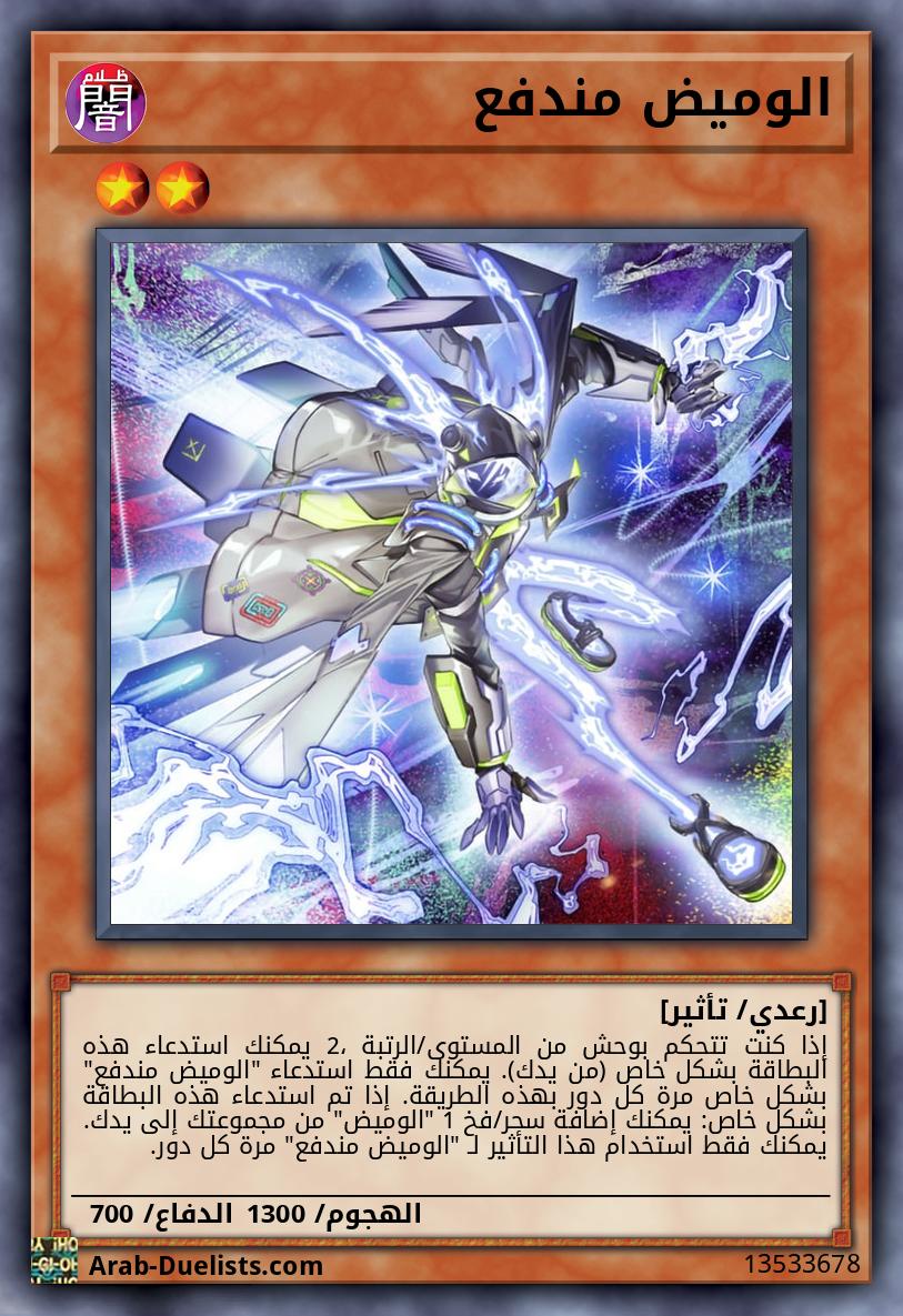 إذا كنت تتحكم بوحش من المستوى/الرتبة 2، يمكنك استدعاء هذه البطاقة بشكل خاص (من يدك). يمكنك فقط استدعاء "الوميض مندفع" بشكل خاص مرة كل دور بهذه الطريقة. إذا تم استدعاء هذه البطاقة بشكل خاص: يمكنك إضافة سحر/فخ 1 "الوميض" من مجموعتك إلى يدك. يمكنك فقط استخدام هذا التأثير لـ "الوميض مندفع" مرة كل دور.