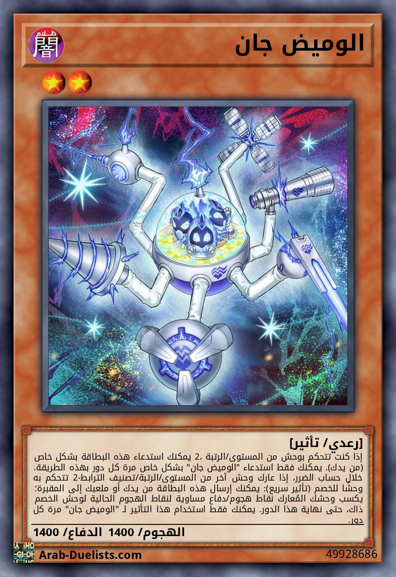 إذا كنت تتحكم بوحش من المستوى/الرتبة 2، يمكنك استدعاء هذه البطاقة بشكل خاص (من يدك). يمكنك فقط استدعاء "الوميض جان" بشكل خاص مرة كل دور بهذه الطريقة. خلال حساب الضرر، إذا عارك وحش آخر من المستوى/الرتبة/تصنيف الترابط-2 تتحكم به وحشًا للخصم (تأثير سريع): يمكنك إرسال هذه البطاقة من يدك أو ملعبك إلى المقبرة؛ يكسب وحشك المُعارك نقاط هجوم/دفاع مساوية لنقاط الهجوم الحالية لوحش الخصم ذاك، حتى نهاية هذا الدور. يمكنك فقط استخدام هذا التأثير لـ "الوميض جان" مرة كل دور.