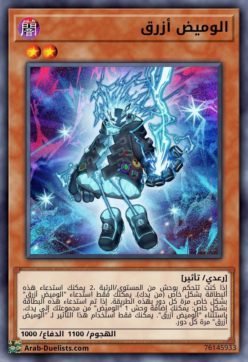 إذا كنت تتحكم بوحش من المستوى/الرتبة 2، يمكنك استدعاء هذه البطاقة بشكل خاص (من يدك). يمكنك فقط استدعاء "الوميض أزرق" بشكل خاص مرة كل دور بهذه الطريقة. إذا تم استدعاء هذه البطاقة بشكل خاص: يمكنك إضافة وحش 1 "الوميض" من مجموعتك إلى يدك، باستثناء "الوميض أزرق". يمكنك فقط استخدام هذا التأثير لـ "الوميض أزرق" مرة كل دور.