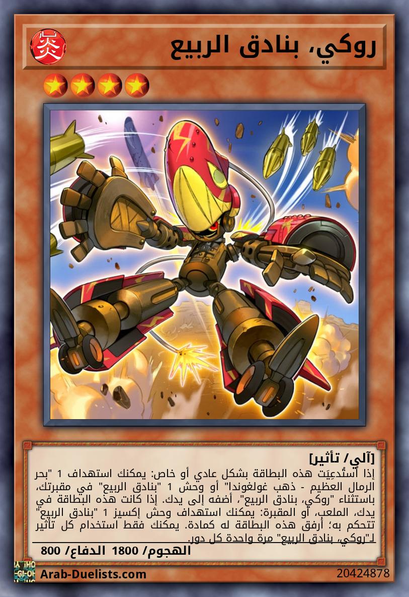 إذا اُستُدعِيَت هذه البطاقة بشكل عادي أو خاص: يمكنك استهداف 1 "بحر الرمال العظيم - ذهب غولغوندا" أو وحش 1 "بنادق الربيع" في مقبرتك، باستثناء "روكي، بنادق الربيع"، أضفه إلى يدك. إذا كانت هذه البطاقة في يدك، الملعب، أو المقبرة: يمكنك استهداف وحش إكسيز 1 "بنادق الربيع" تتحكم به؛ أرفق هذه البطاقة له كمادة. يمكنك فقط استخدام كل تأثير لـ"روكي، بنادق الربيع" مرة واحدة كل دور.