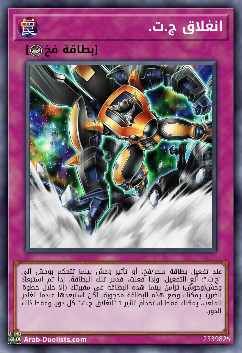 عند تفعيل بطاقة سحر/فخ، أو تأثير وحش بينما تتحكم بوحش آلي "ج.ت.": ألغِ التفعيل، وإذا فعلت، فدمر تلك البطاقة. إذا تم استبعاد وحش(وحوش) تزامن بينما هذه البطاقة في مقبرتك (إلا خلال خطوة الضرر): يمكنك وضع هذه البطاقة محجوبة، لكن استبعدها عندما تغادر الملعب. يمكنك فقط استخدام تأثير 1 "انغلاق ج.ت." كل دور، وفقط ذلك الدور.