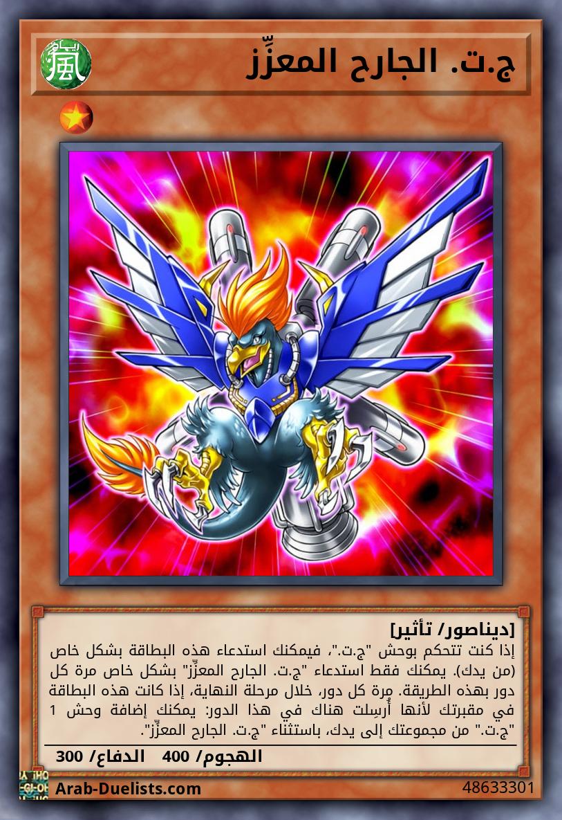 إذا كنت تتحكم بوحش "ج.ت."، فيمكنك استدعاء هذه البطاقة بشكل خاص (من يدك). يمكنك فقط استدعاء "ج.ت. الجارح المعزِّز" بشكل خاص مرة كل دور بهذه الطريقة. مرة كل دور، خلال مرحلة النهاية، إذا كانت هذه البطاقة في مقبرتك لأنها أُرسِلت هناك في هذا الدور: يمكنك إضافة وحش 1 "ج.ت." من مجموعتك إلى يدك، باستثناء "ج.ت. الجارح المعزِّز".