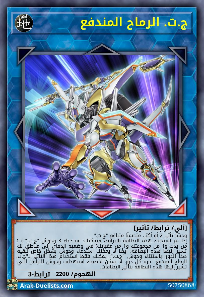 وحشا تأثير 2 أو أكثر، متضمنًا متناغم "ج.ت." إذا تم استدعاء هذه البطاقة بالترابط، فيمكنك: استدعاء 3 وحوش "ج.ت." ( 1 من يدك و1 من مجموعتك و1 من مقبرتك) في وضعية الدفاع، إلى مناطق لك تشير إليها هذه البطاقة، أيضًا لا يمكنك استدعاء وحوش بشكل خاص لبقية هذا الدور، باستثناء وحوش "ج.ت.". يمكنك فقط استخدام هذا التأثير لـ"ج.ت. الرماح المندفع" مرة كل دور. لا يمكن لخصمك استهداف وحوش التزامن التي تشير إليها هذه البطاقة بتأثير البطاقات.
