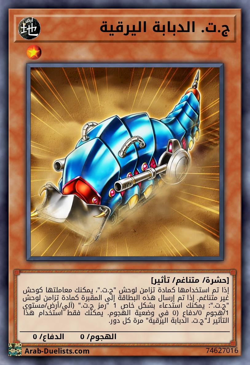 إذا تم استخدامها كمادة تزامن لوحش "ج.ت."، يمكنك معاملتها كوحش غير متناغم. إذا تم إرسال هذه البطاقة إلى المقبرة كمادة تزامن لوحش "ج.ت.": يمكنك استدعاء بشكل خاص 1 "رمز ج.ت." (آلي/أرض/مستوى 1/هجوم 0/دفاع 0) في وضعية الهجوم. يمكنك فقط استخدام هذا التأثير لـ"ج.ت. الدبابة اليرقية" مرة كل دور.