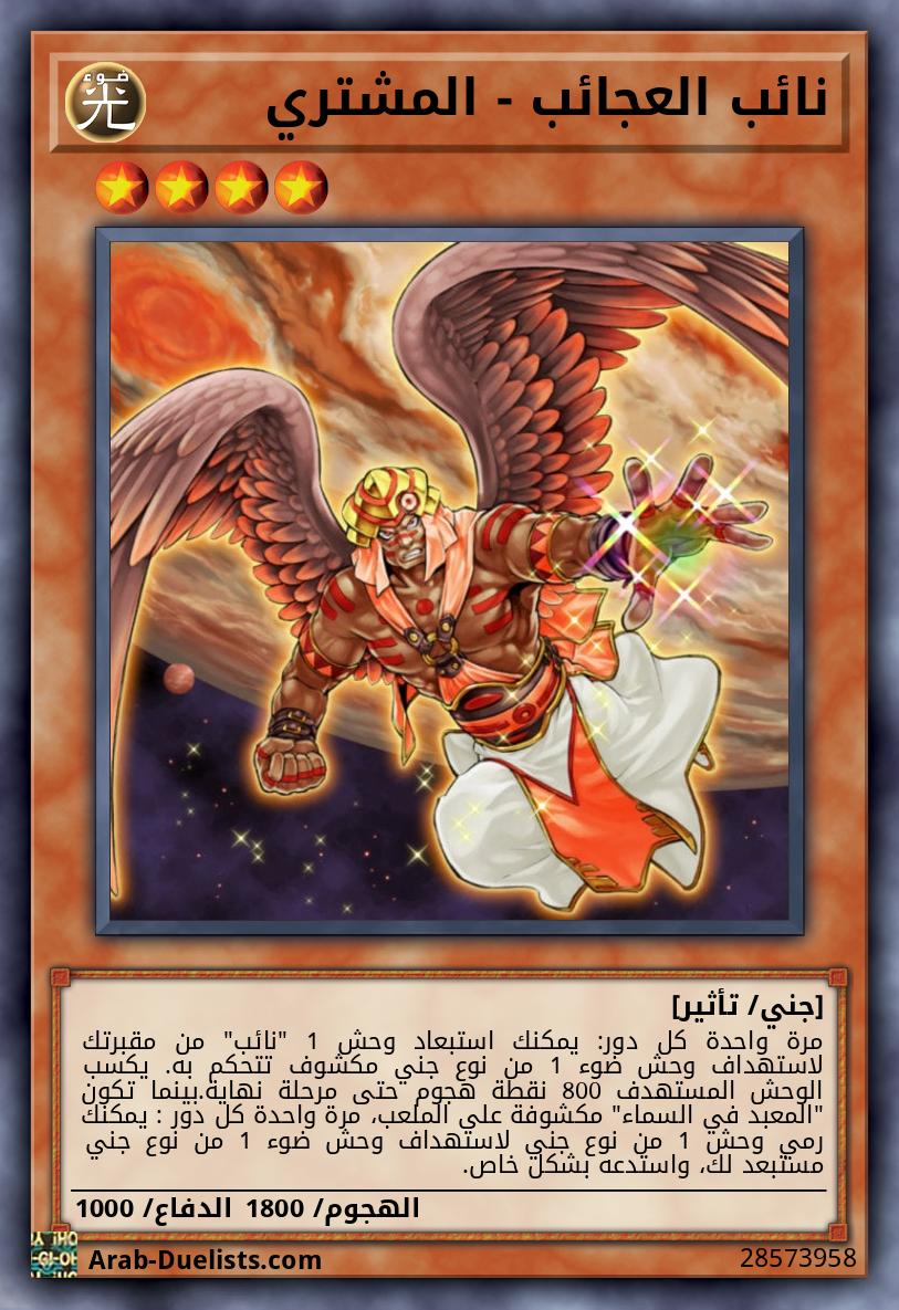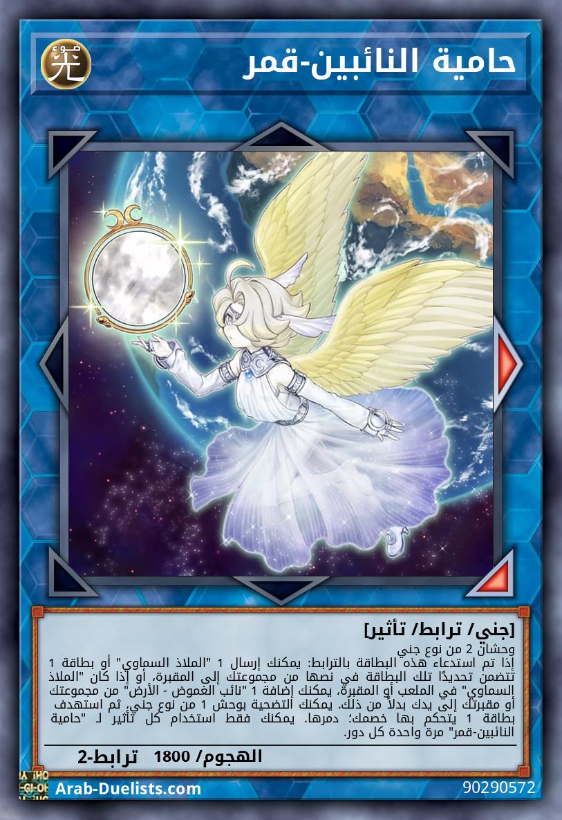 وحشان 2 من نوع جني إذا تم استدعاء هذه البطاقة بالترابط: يمكنك إرسال 1 "الملاذ السماوي" أو بطاقة 1 تتضمن تحديدًا تلك البطاقة في نصها من مجموعتك إلى المقبرة، أو إذا كان "الملاذ السماوي" في الملعب أو المقبرة، يمكنك إضافة 1 "نائب الغموض - الأرض" من مجموعتك أو مقبرتك إلى يدك بدلاً من ذلك. يمكنك التضحية بوحش 1 من نوع جني، ثم استهدف بطاقة 1 يتحكم بها خصمك؛ دمرها. يمكنك فقط استخدام كل تأثير لـ "حامية النائبين-قمر" مرة واحدة كل دور.