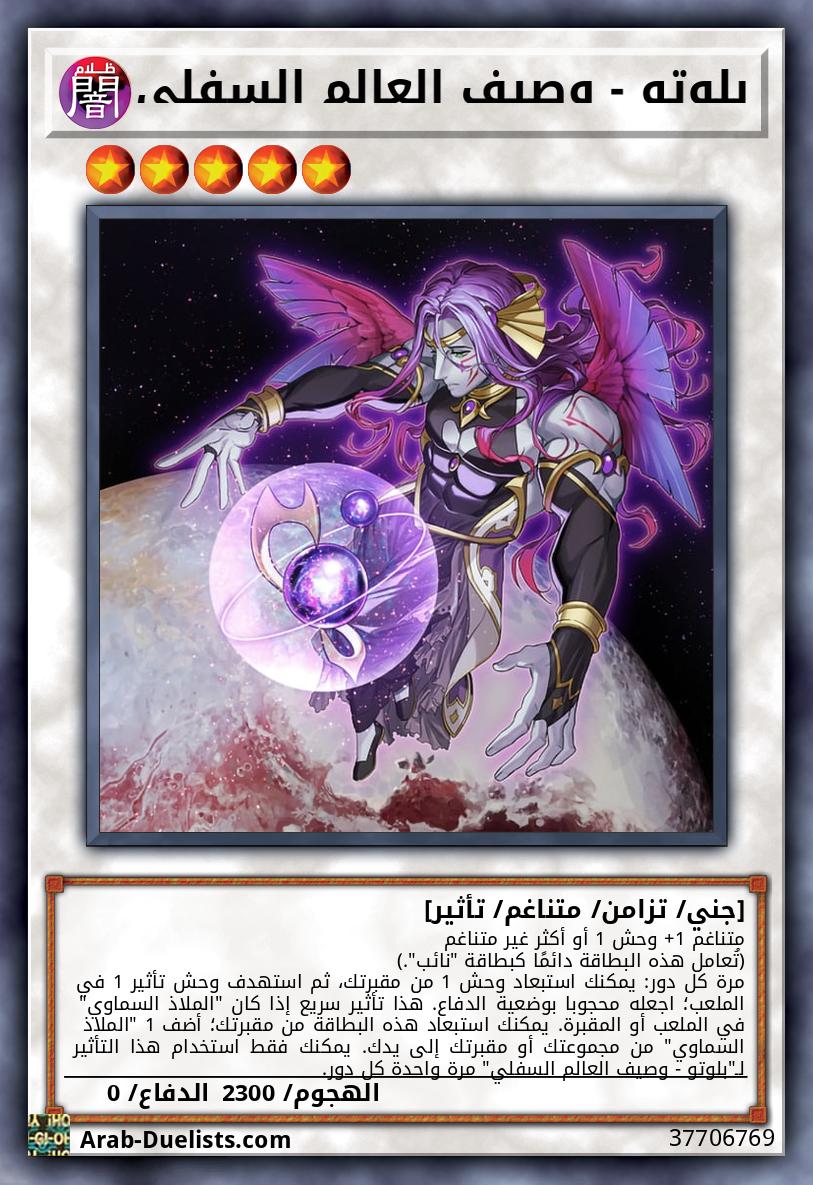 متناغم 1+ وحش 1 أو أكثر غير متناغم (تُعامل هذه البطاقة دائمًا كبطاقة "نائب".) مرة كل دور: يمكنك استبعاد وحش 1 من مقبرتك، ثم استهدف وحش تأثير 1 في الملعب؛ اجعله محجوبا بوضعية الدفاع. هذا تأثير سريع إذا كان "الملاذ السماوي" في الملعب أو المقبرة. يمكنك استبعاد هذه البطاقة من مقبرتك؛ أضف 1 "الملاذ السماوي" من مجموعتك أو مقبرتك إلى يدك. يمكنك فقط استخدام هذا التأثير لـ"بلوتو - وصيف العالم السفلي" مرة واحدة كل دور.