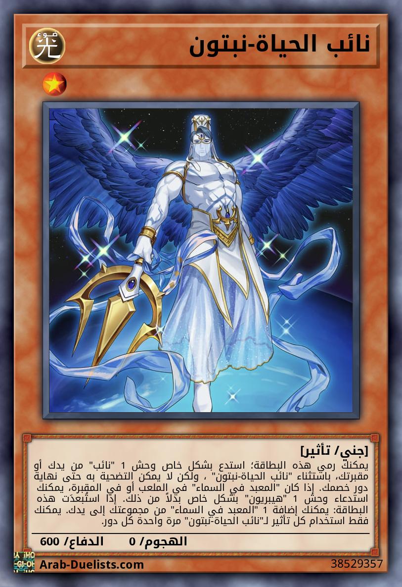 يمكنك رمي هذه البطاقة؛ استدع بشكل خاص وحش 1 "نائب" من يدك أو مقبرتك، باستثناء "نائب الحياة-نبتون" ، ولكن لا يمكن التضحية به حتى نهاية دور خصمك. إذا كان "المعبد في السماء" في الملعب أو في المقبرة، يمكنك استدعاء وحش 1 "هيبريون" بشكل خاص بدلاً من ذلك. إذا استُبعدَت هذه البطاقة: يمكنك إضافة 1 "المعبد في السماء" من مجموعتك إلى يدك. يمكنك فقط استخدام كل تأثير لـ"نائب الحياة-نبتون" مرة واحدة كل دور.