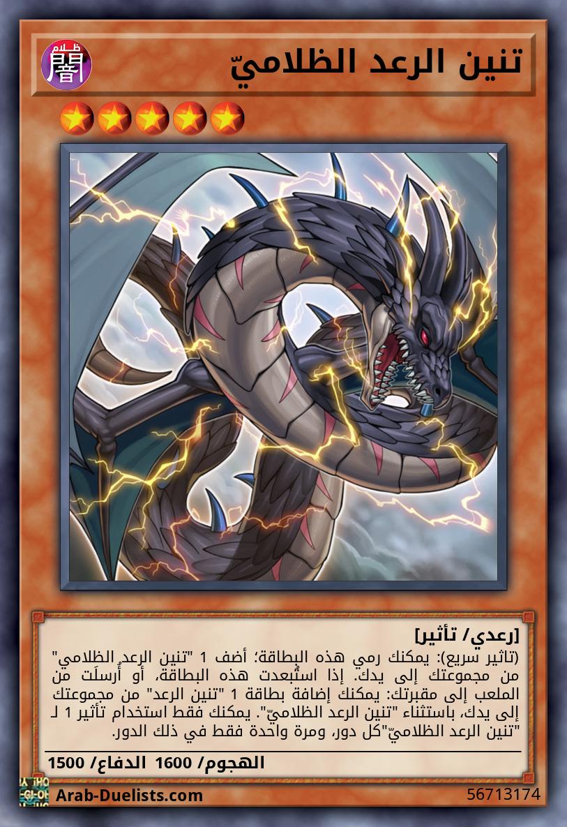 (تاثير سريع): يمكنك رمي هذه البطاقة؛ أضف 1 "تنين الرعد الظلامي" من مجموعتك إلى يدك. إذا استُبعدت هذه البطاقة، أو أُرسلَت من الملعب إلى مقبرتك: يمكنك إضافة بطاقة 1 "تنين الرعد" من مجموعتك إلى يدك، باستثناء "تنين الرعد الظلاميّ". يمكنك فقط استخدام تأثير 1 لـ "تنين الرعد الظلاميّ"كل دور، ومرة واحدة فقط في ذلك الدور.
