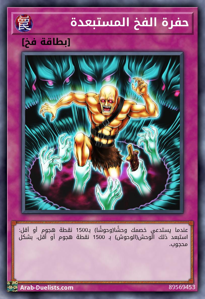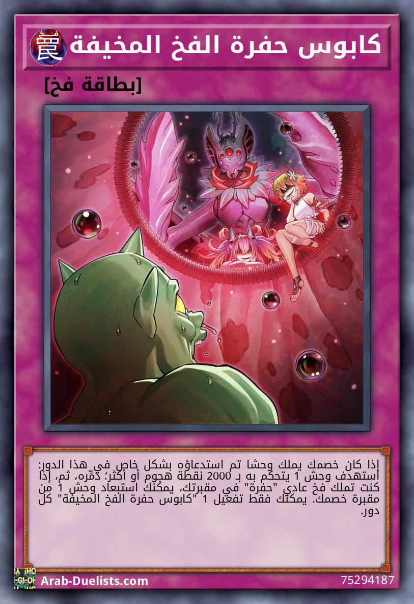 إذا كان خصمك يملك وحشا تم استدعاؤه بشكل خاص في هذا الدور: استهدف وحش 1 يتحكم به بـ 2000 نقطة هجوم أو أكثر؛ دَمِّره، ثم، إذا كنت تملك فخ عادي "حفرة" في مقبرتك، يمكنك استبعاد وحش 1 من مقبرة خصمك. يمكنك فقط تفعيل 1 "كابوس حفرة الفخ المخيفة" كل دور.